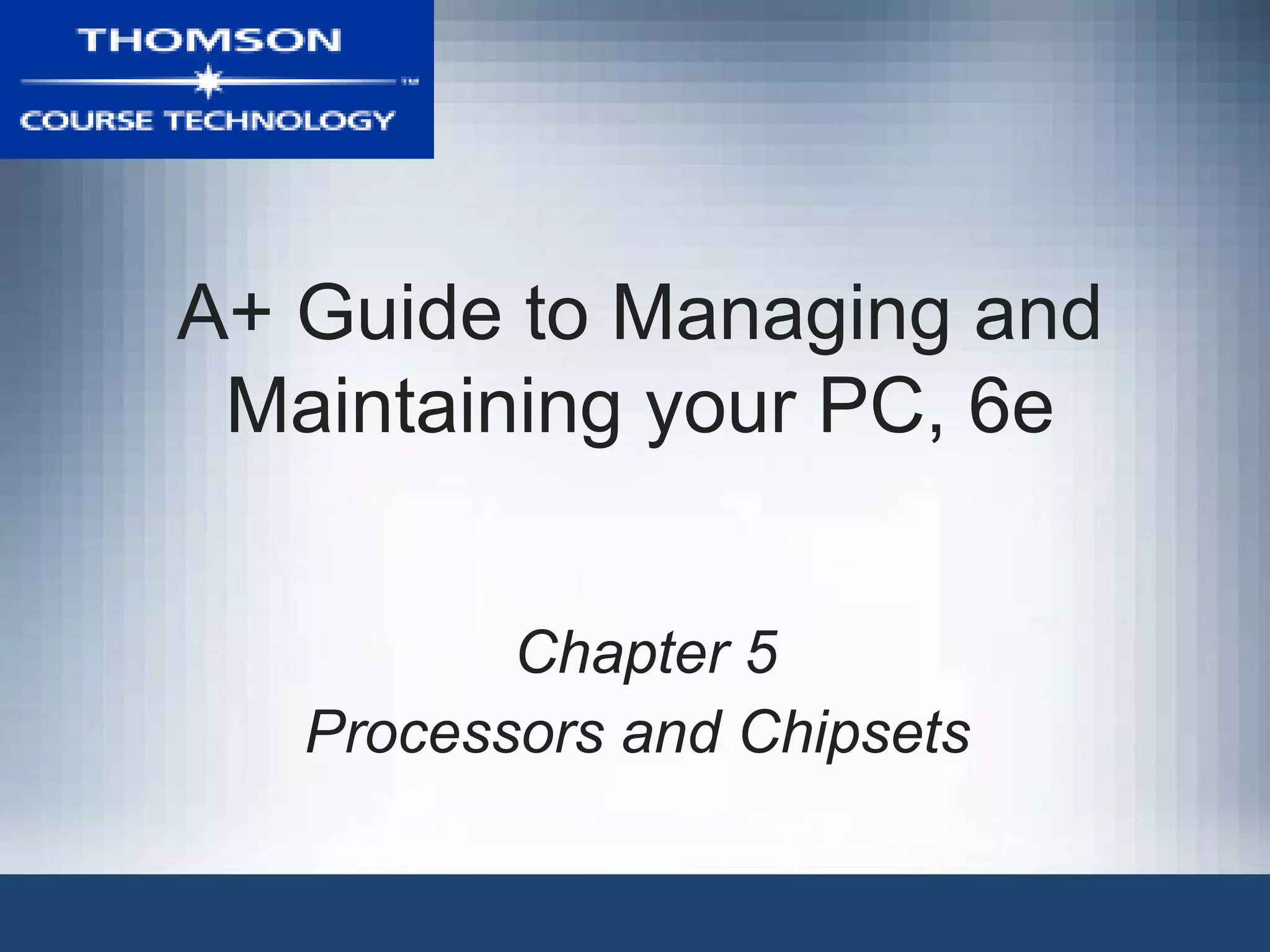 The document provides an overview of processors and chipsets used in personal computers. It discusses the major components of a processor including the control unit, arithmetic logic units, and caches. It describes different types of processors from manufacturers like Intel, AMD, and others. Key points covered include how processors function, different socket and slot types for installing processors, factors for choosing processors like clock speed and cores, and steps for installing and upgrading processors.