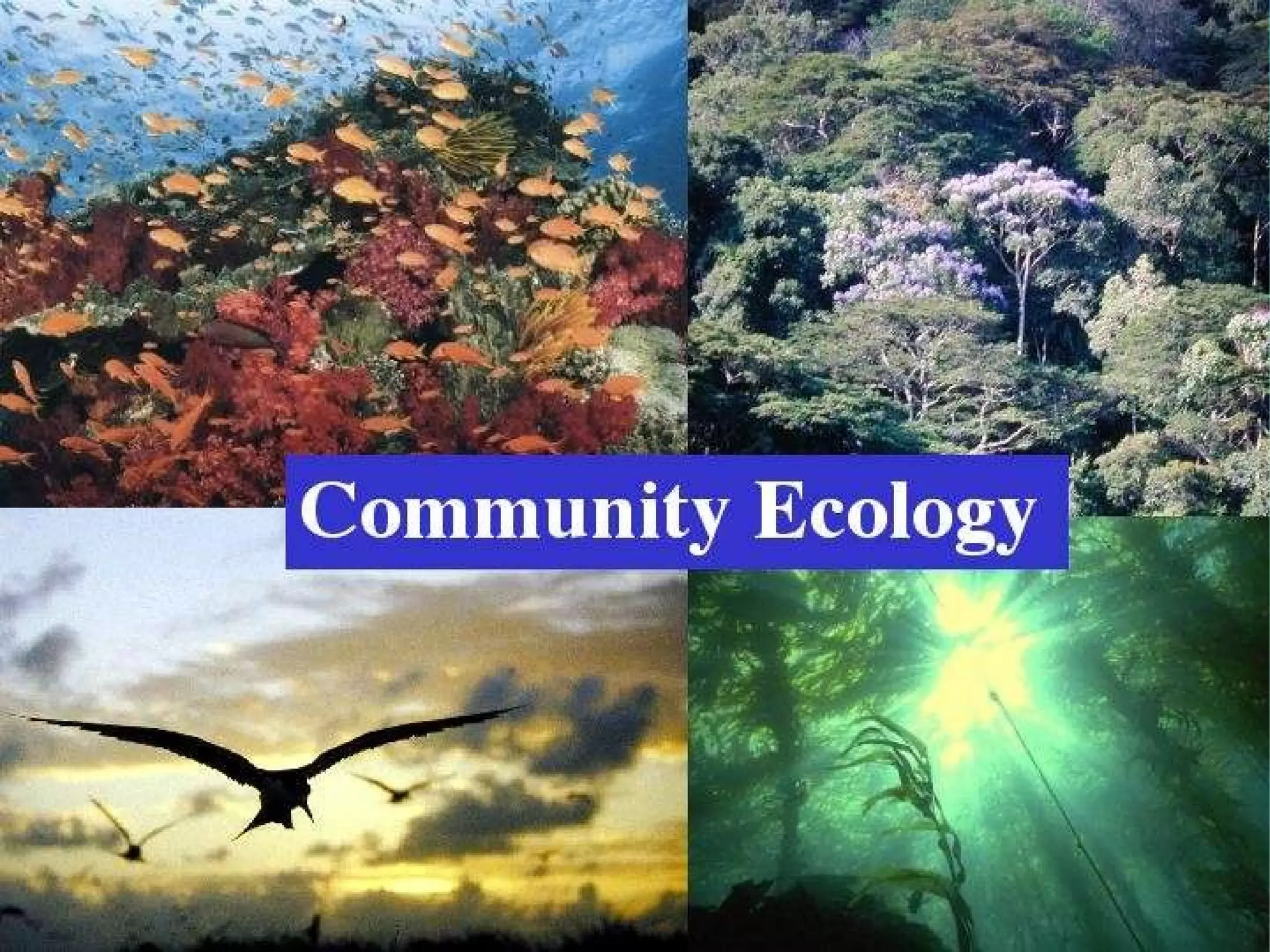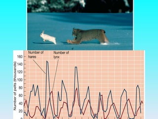 An ecological community consists of interacting species living in a given area. Organisms in a community can be divided into trophic levels based on how they obtain energy, such as primary producers obtaining energy from sunlight and heterotrophs obtaining energy from consuming primary producers. Ecological interactions between species within a community include predation, competition, mutualism, and others. Disturbances can alter community composition through succession as new species colonize or dominant species are removed.