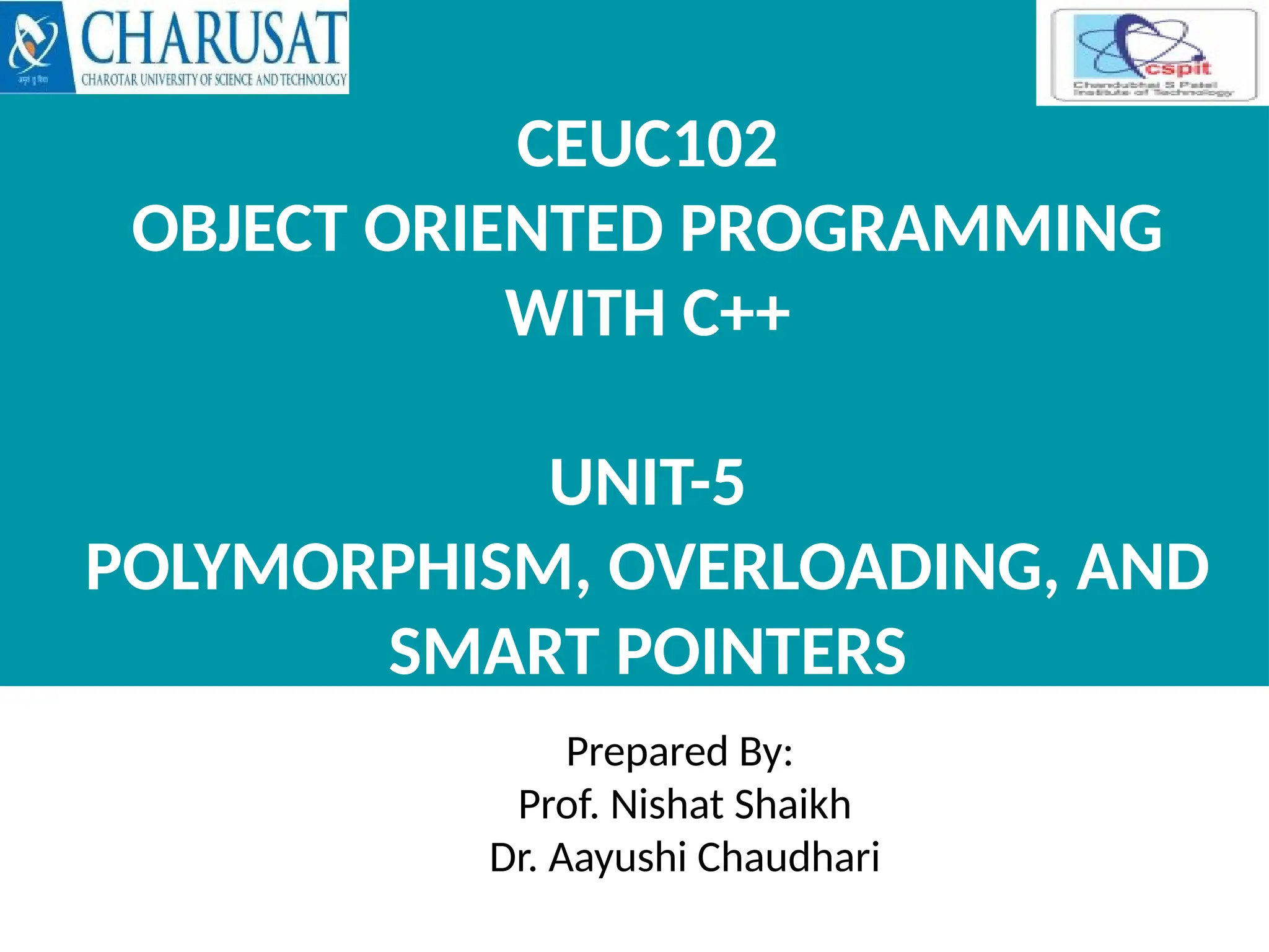 Unit 7: Operator Overloading Prepared By: Prof. Nishat Shaikh & Dr. Aayushi Chaudhari