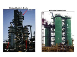 The document summarizes hydrocracking, which converts higher boiling petroleum fractions to gasoline and jet fuels using a catalyst. Key points include: