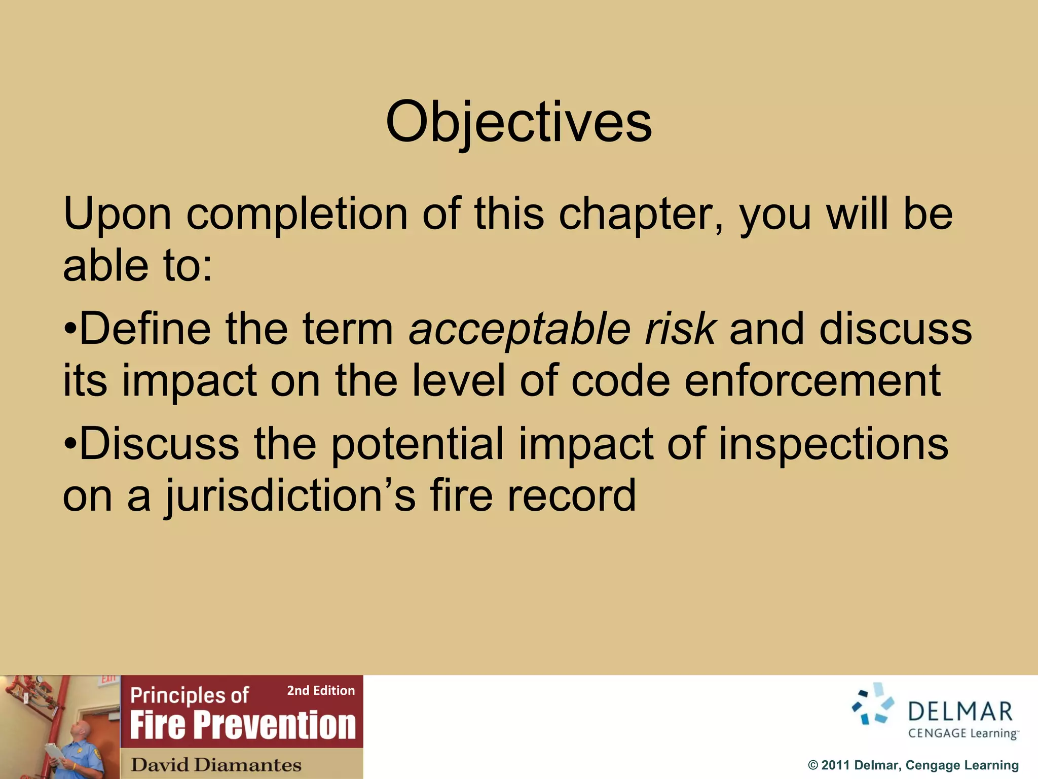 The document discusses the importance and objectives of fire inspections. It notes that the level of acceptable risk is constantly evolving and that inspection programs have been proven effective in reducing fire incidence by around 50%. The purpose of inspections is to ensure life safety and compliance with fire codes. Jurisdictions must establish priorities for inspections based on risks associated with occupancy classes and permits required by fire codes. Inspections of existing and new buildings are necessary to identify hazards and ensure safety.