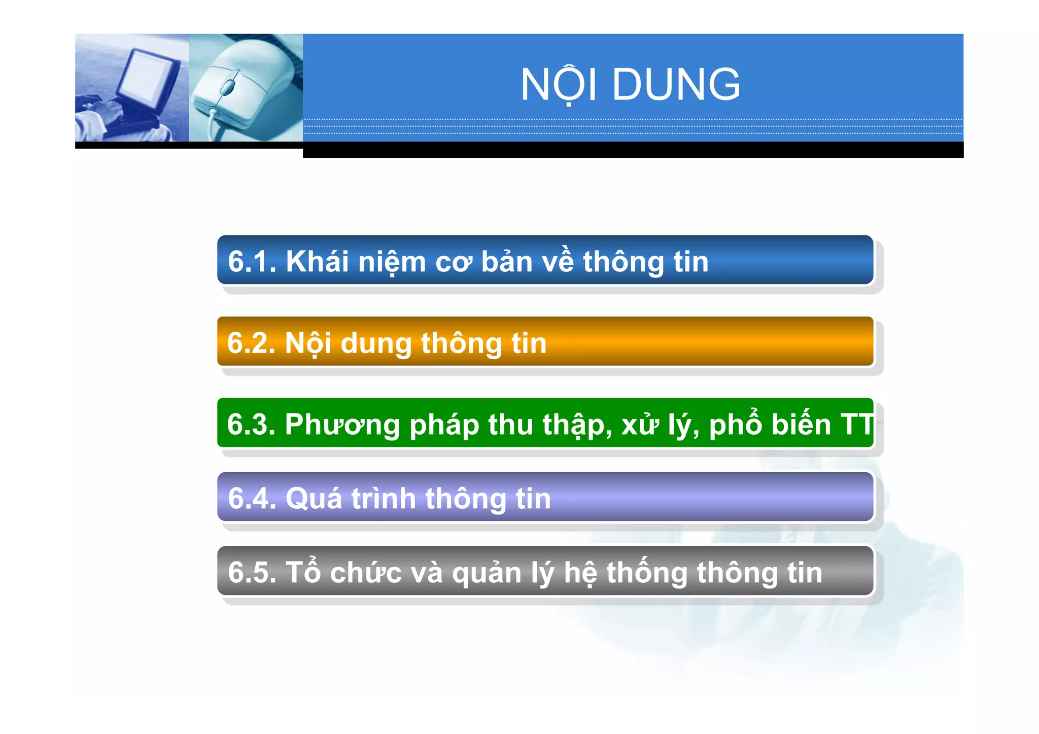 Chương này tập trung vào vai trò và quy trình của thông tin trong quản trị hoạt động tổ chức, bao gồm các khái niệm cơ bản, phương pháp thu thập và xử lý thông tin, cũng như các yếu tố ảnh hưởng đến chất lượng thông tin. Nội dung thông tin được phân loại và xác định các yêu cầu, tiêu chuẩn đánh giá để đáp ứng nhu cầu quản trị. Hệ thống thông tin được quản lý và tổ chức theo chức năng nhằm hỗ trợ hiệu quả cho các hoạt động và quyết định trong tổ chức.