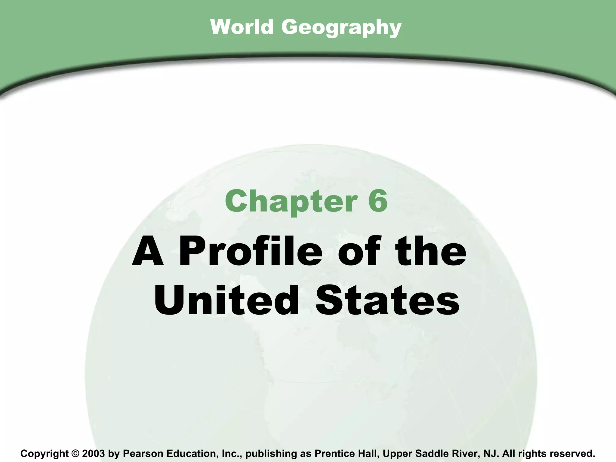 The document is from a World Geography textbook chapter about the United States. It discusses the country's natural resources, economic success due to transportation and communication technologies, and respect for individual freedoms. The US has an abundance of land and natural resources like forests, oil, gas and coal. Transportation technologies like steamboats, canals, railroads, automobiles and highways helped economic growth by making transport cheaper and faster. Communication technologies like the telegraph and internet also boosted business. The US political and economic systems value individual equality, opportunity and free enterprise, further supporting economic success.