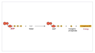 The document discusses how different organisms obtain and utilize energy. It explains that organisms get energy primarily from food which contains organic molecules that store chemical energy. Autotrophs can produce their own food through photosynthesis using sunlight, water, and carbon dioxide to produce oxygen and energy-rich molecules like glucose and ATP. Heterotrophs obtain energy by consuming autotrophs or other organisms. The energy from food is captured and transported within cells by ATP and is released through cellular respiration. Photosynthesis and cellular respiration are key processes in how organisms harness and release energy.