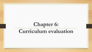 This document discusses models of curriculum evaluation. It describes five models: