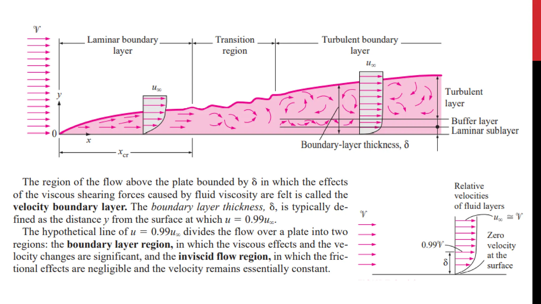 over the surface with a uniform free-stream velocity u, but the velocity within boundary layer is two-