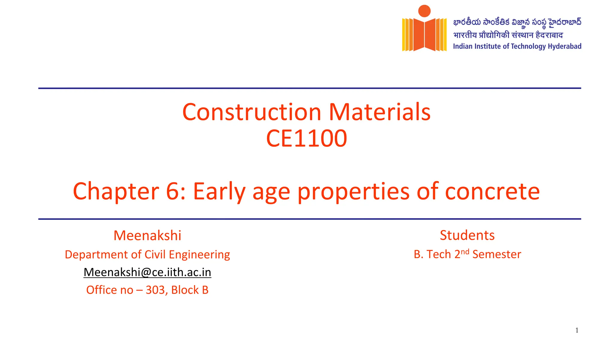 • Characteristics of fresh concrete: workability, setting time, and maturity or rate of strength