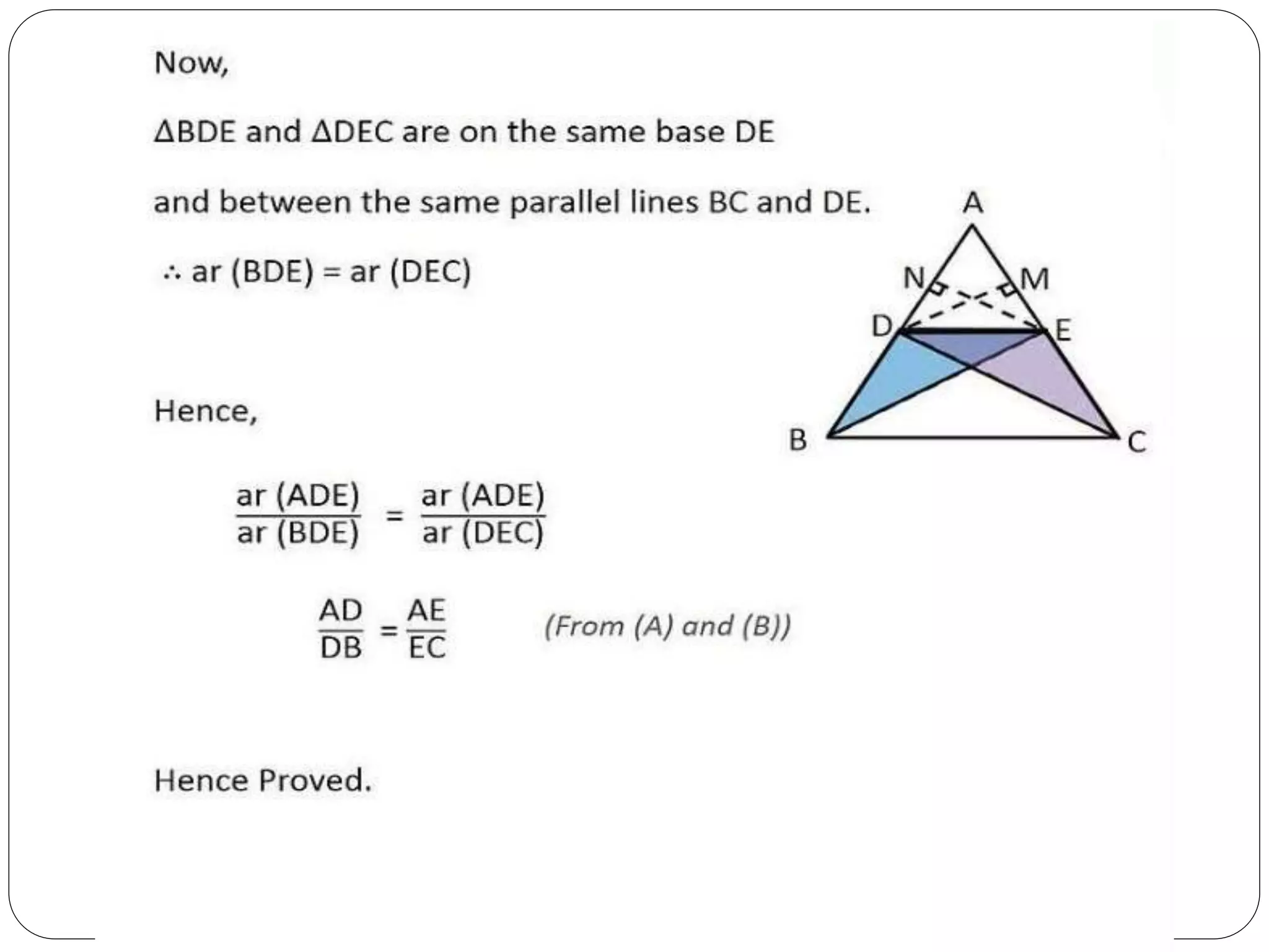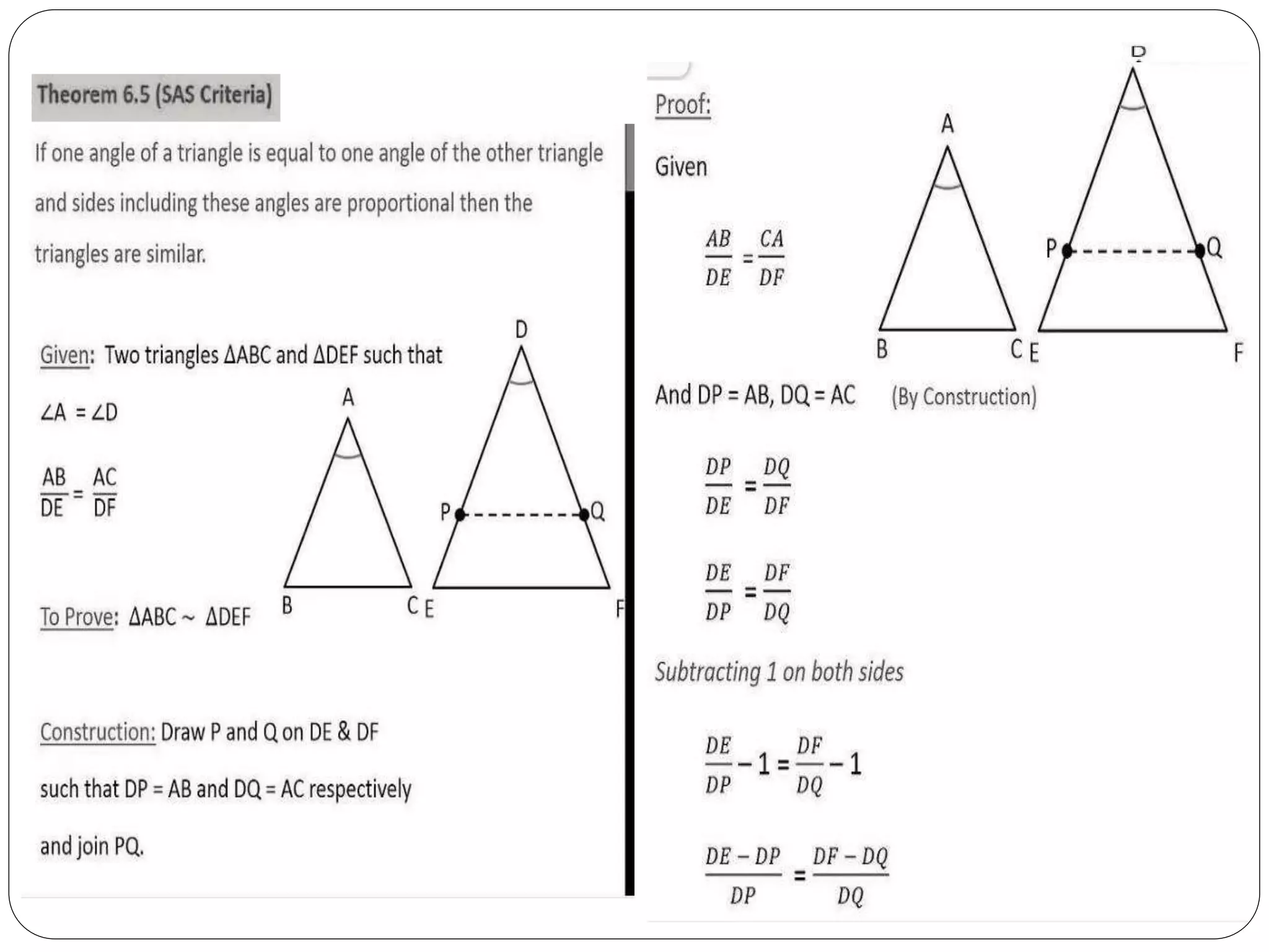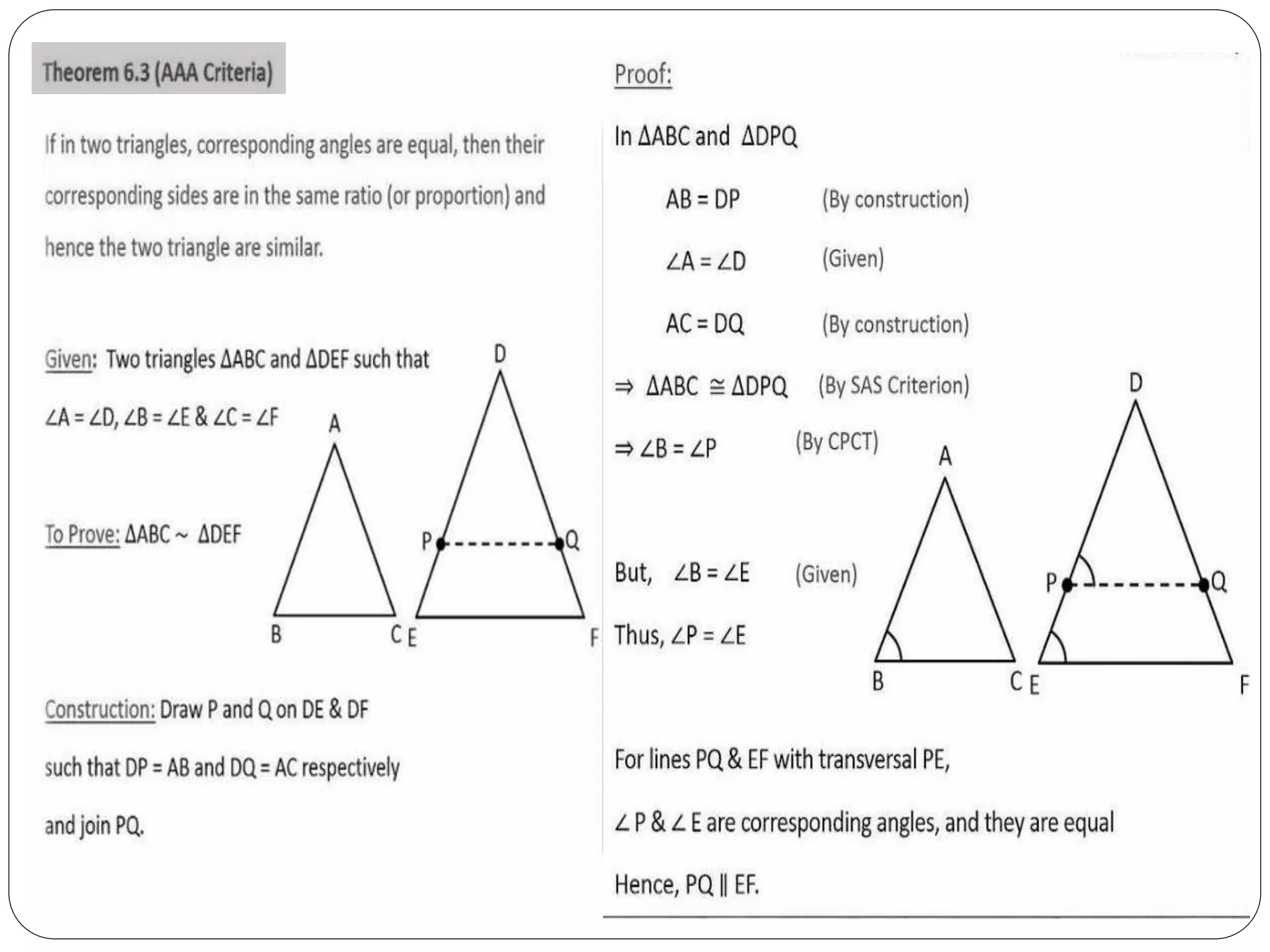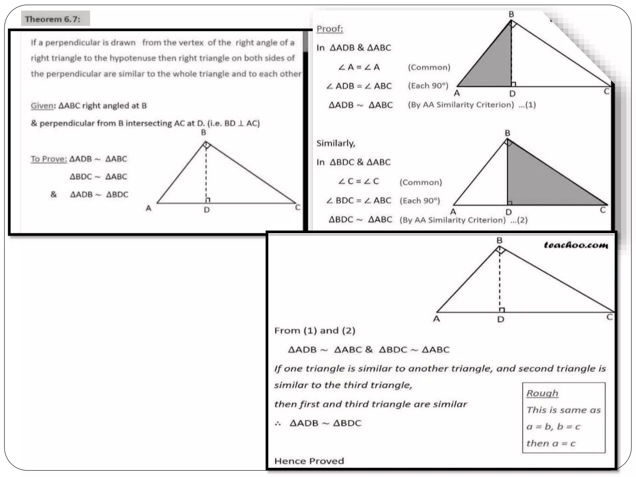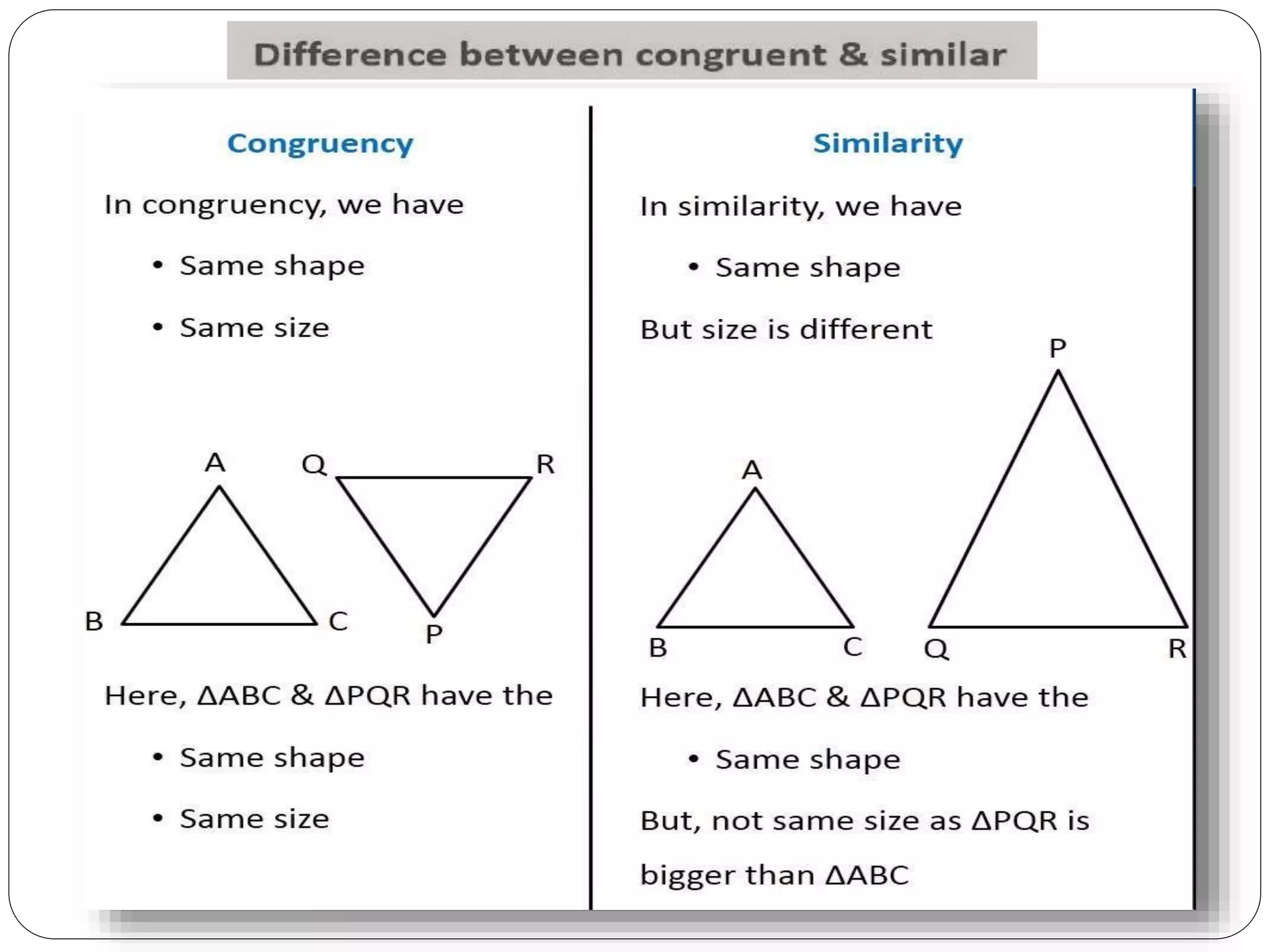 This document provides an overview of triangles, including their properties, types, similarity, areas of similar triangles, and the Pythagorean theorem. It defines triangles as polygons with three sides and angles, and notes their interior angles sum to 180 degrees. Triangles are classified by angle and side length into right, acute, obtuse, isosceles, equilateral, and scalene varieties. Similarity is discussed, along with criteria like equal angles and proportional sides. Areas of similar triangles are shown to be proportional to a ratio of corresponding sides. Finally, the Pythagorean theorem and its applications to find missing sides of right triangles are covered.