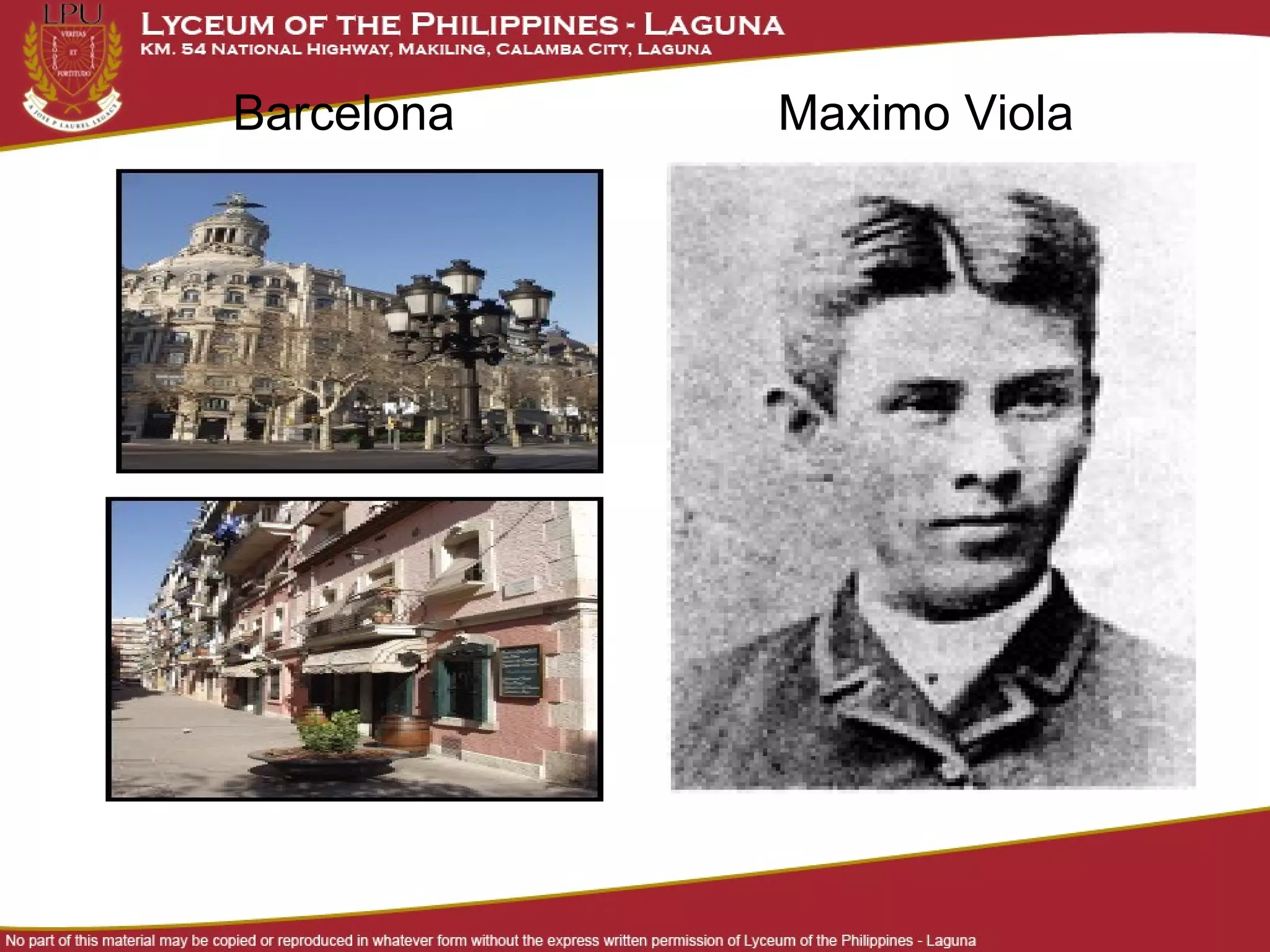 Rizal spent time in several European cities from 1885-1887, including Barcelona, Paris, Strasbourg, Heidelberg, Liepzig, Dresden, and Berlin. In these cities he studied medicine, attended university lectures, improved his art skills, associated with prominent scientists, and worked to publish his novel Noli Me Tangere. He struggled with poverty at times, pawning possessions and often going hungry, but remained dedicated to his studies.