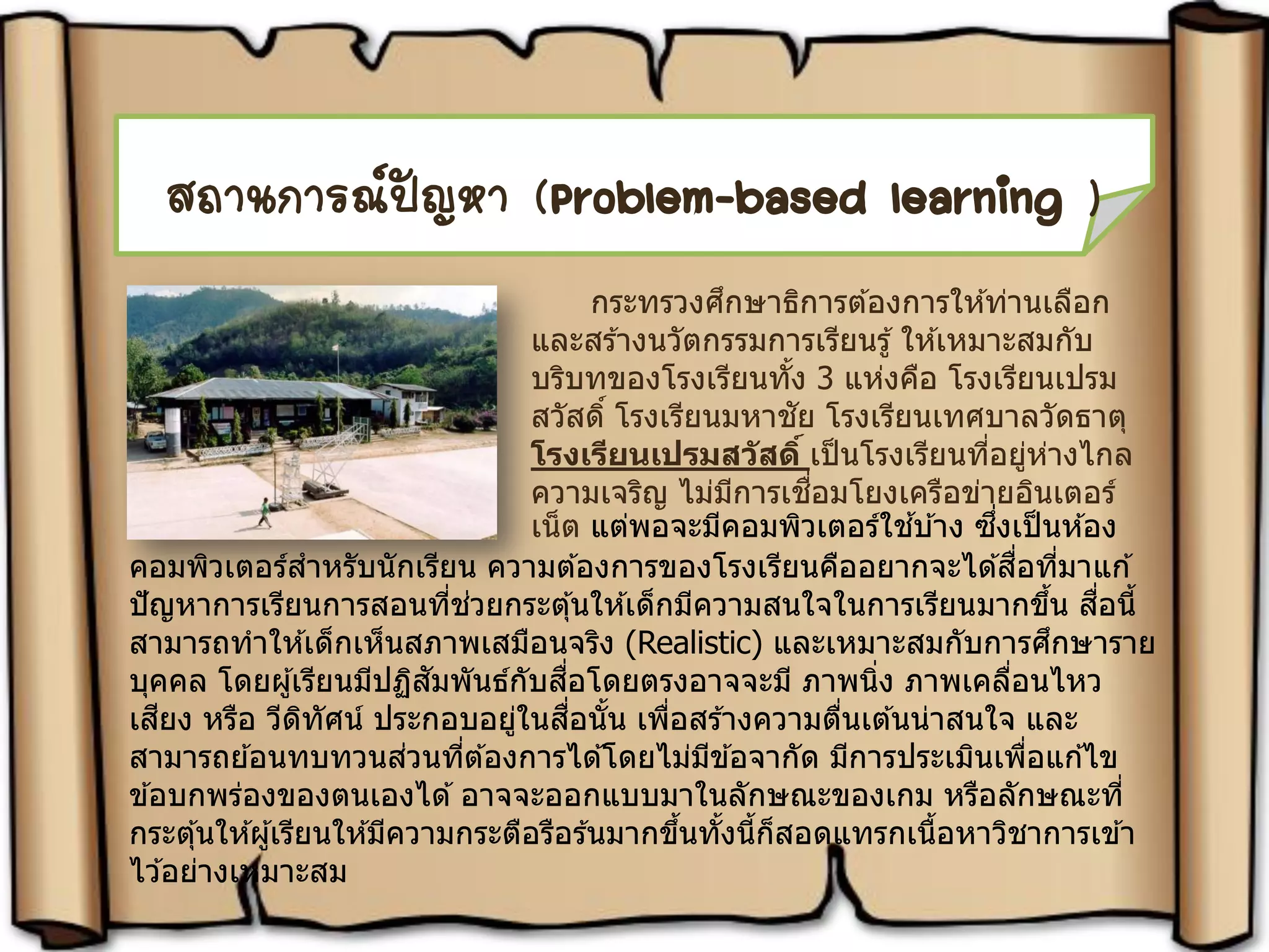 สถานการณ์ปัญหา มีแหล่งเรียนรู้ให ้ผู้เรียนได ้