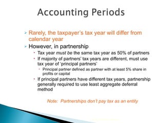 - Partnerships and S-corporations can elect a fiscal tax year other than the calendar year if they can demonstrate their natural business cycle aligns with the alternative year. However, they must still make estimated tax payments to cover taxes on income earned during the deferral period between the fiscal year-end and December 31.