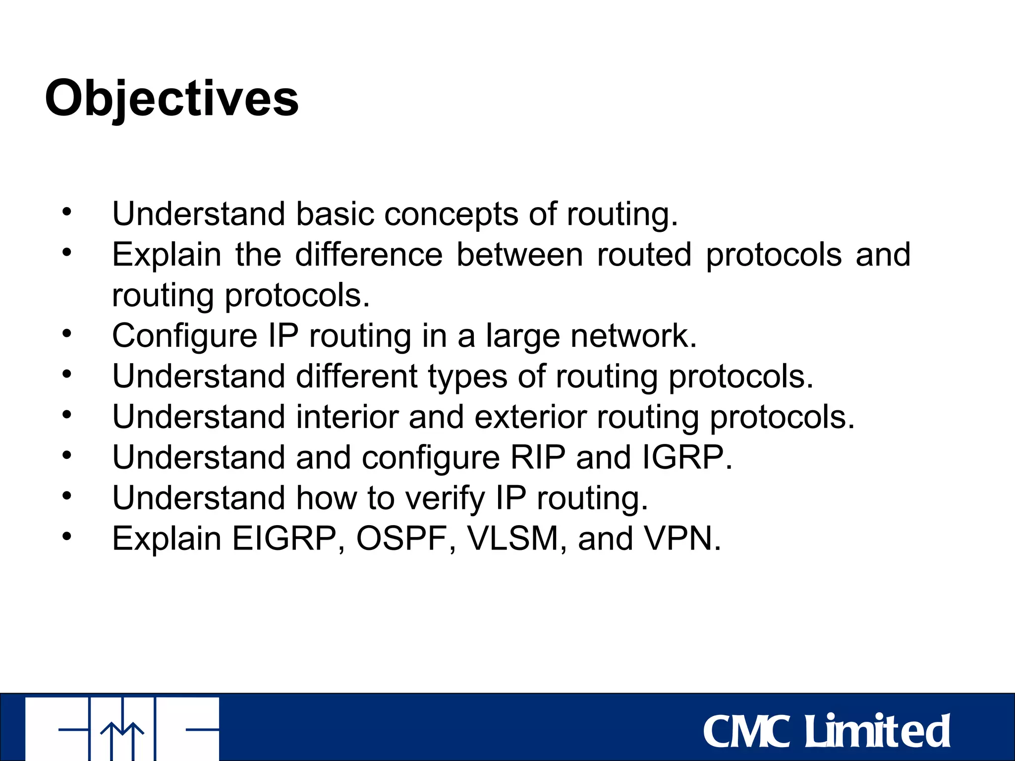 The document discusses routing protocols and concepts. It explains that routing is the act of moving information across an internetwork from source to destination. It then discusses different types of routing protocols including interior gateway protocols like RIP, IGRP, EIGRP, and OSPF, as well as exterior protocols. The document also covers routing fundamentals and how to configure and verify routing on Cisco routers.