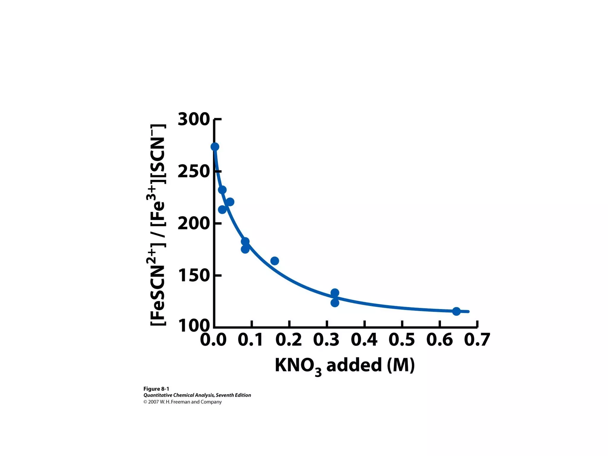 This document discusses how activity coefficients can explain the effect of inert salts on solubility and acid dissociation constants. It provides examples showing that a precipitate is more soluble and a weak acid dissociates more when the ionic strength is increased by adding an inert salt. This is because the activity coefficients of the ions are less than 1 and decrease with increasing ionic strength, making the activities higher than concentrations. The Debye-Huckel equation can be used to calculate activity coefficients based on ionic charge and strength.