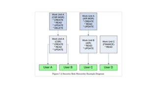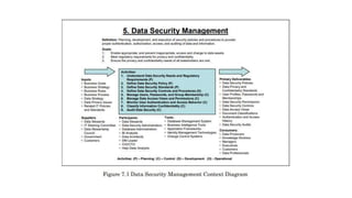 This document discusses data security management. It outlines key concepts and activities including understanding business and regulatory requirements, defining security policies, standards, controls and procedures, managing users, passwords and permissions. The goal is to protect information through proper authentication, authorization, access and auditing in alignment with privacy needs and regulations.