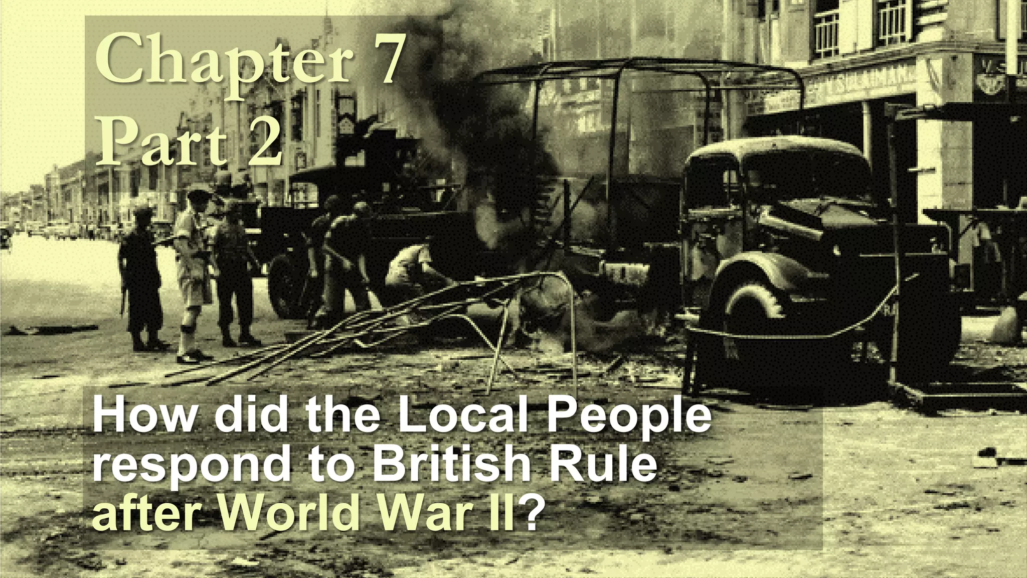 The document discusses local responses to British rule in the aftermath of World War II, focusing on the Maria Hertogh case and the anti-national service riots. The Hertogh case sparked riots due to perceived bias from the British towards Dutch interests, resulting in significant violence and casualties. Additionally, the introduction of national service led to protests from Chinese students, highlighting growing political awareness and dissatisfaction with colonial governance.