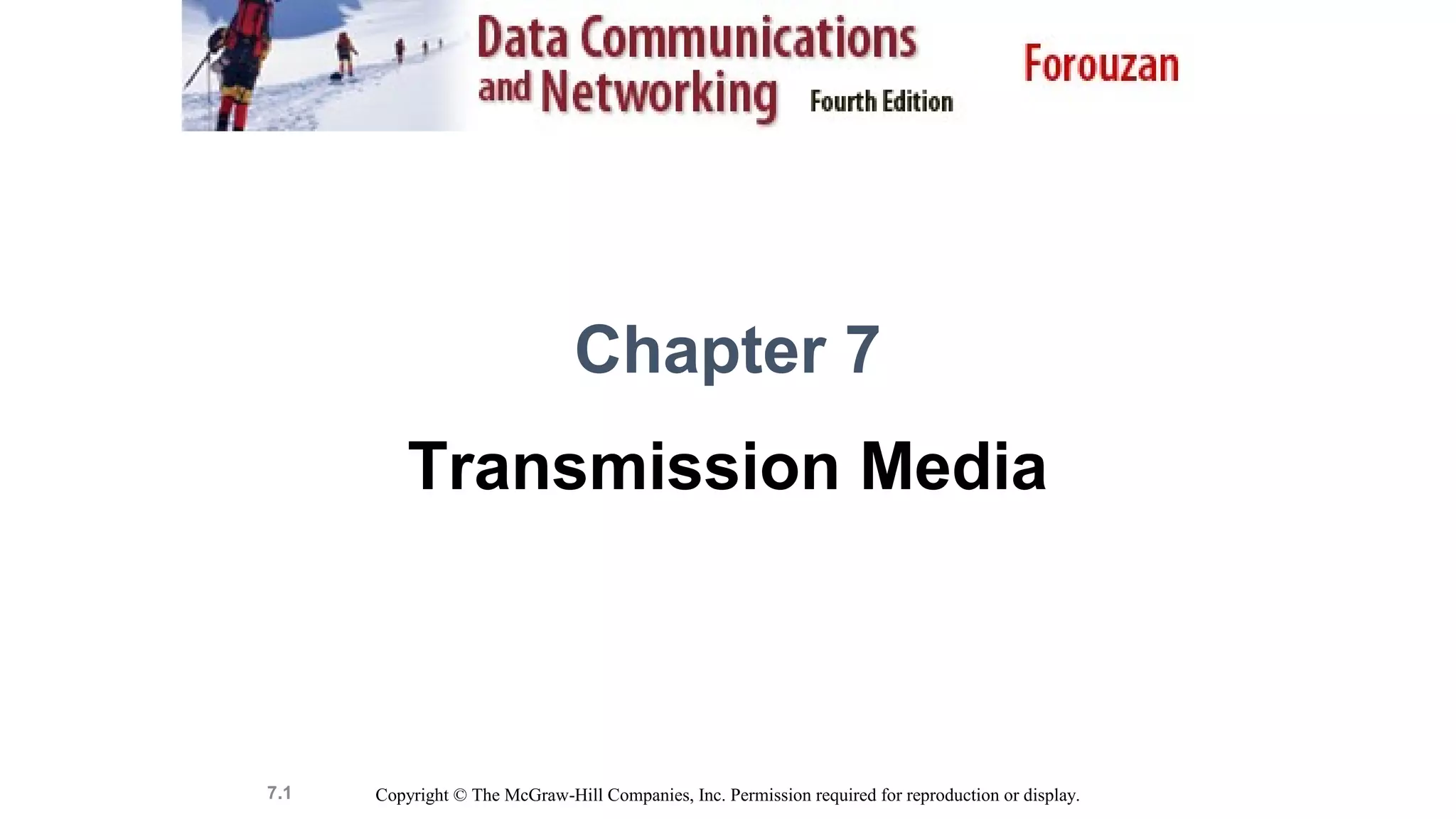 This document section discusses different types of transmission media, including guided media like twisted-pair cable, coaxial cable, and fiber-optic cable. It also discusses unguided or wireless media that transmit electromagnetic waves without a physical conductor, including radio waves, microwaves, and infrared signals. Guided media provide a conduit to transmit signals from one device to another, while wireless media transport signals through the air using electromagnetic waves and antennas.
