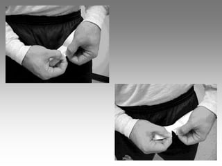 Bandaging and taping are important techniques for injury management and prevention. A variety of materials like gauze, cotton cloth, and elastic bandages can be used for bandaging, with application requiring firm but not restrictive pressure. Taping uses materials like non-elastic and elastic tapes, with proper techniques involving overlapping strips and contouring to the body. Common bandaging and taping procedures are described for the foot, ankle, knee, elbow, wrist, and fingers to provide support and stabilization for injuries.