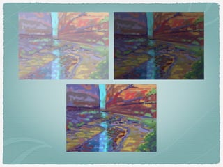 This document discusses color harmony and how different color attributes like hue, value, saturation, and surface affect harmony. Some key points:
