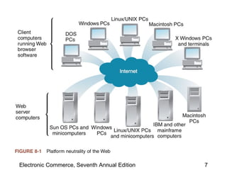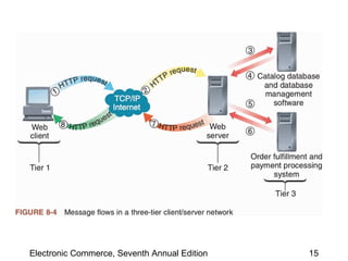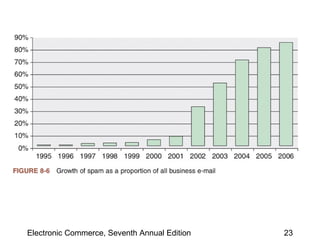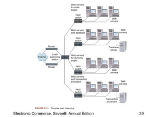 This chapter discusses web server basics, including hardware, software, and architectures. The main job of a web server is to respond to client requests. Common operating systems for web servers are Microsoft and UNIX-based systems. Utility programs like Finger, Ping, and Tracert are used to test connectivity. Unwanted commercial email (spam) has increased and content filters are being developed to address this problem. Web server hardware requires sufficient memory and disk space, while factors like the operating system, connection speed, and user capacity affect performance.