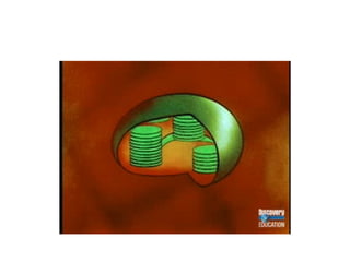 Photosynthesis has two main stages: the light-dependent reaction uses light energy to produce ATP and NADPH, while the light-independent Calvin Cycle uses these products to incorporate CO2 into organic compounds like glucose. Key events in the history of photosynthesis research include the discoveries that plants require water, produce oxygen, and need light to carry out the process. The overall equation is: 6CO2 + 6H2O + light energy → C6H12O6 + 6O2.