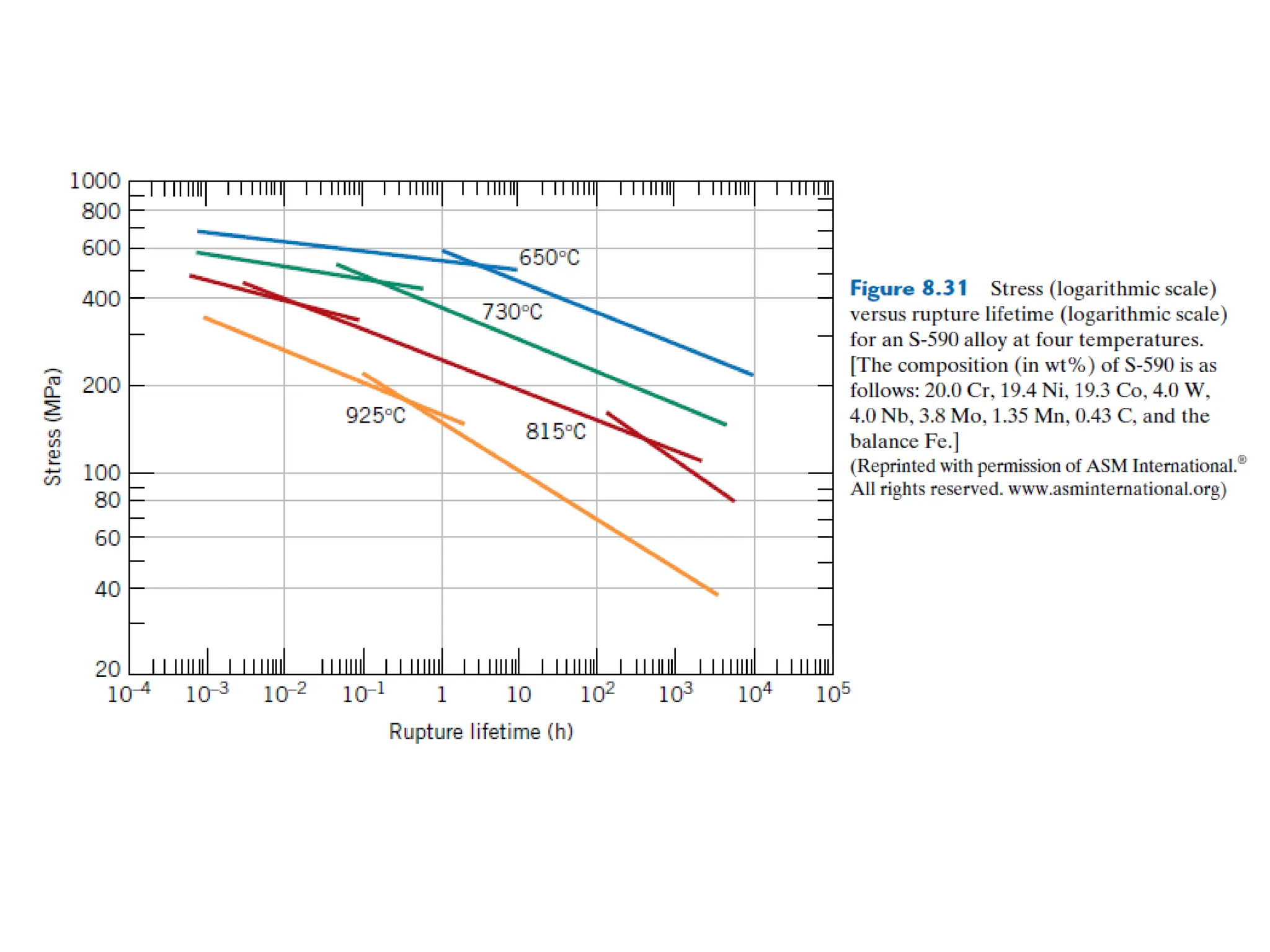 and/or creep rupture tests at temperatures in excess of