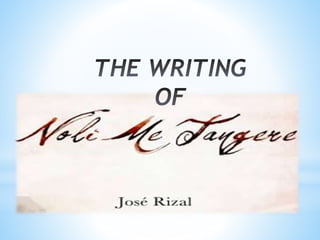 Rizal began writing his novel Noli Me Tangere in Madrid in 1884, inspired by Uncle Tom's Cabin to write about the suffering of Filipinos under Spanish rule. He worked on it throughout travels in Europe, completing it in 1886 in Berlin. Unable to find a publisher, his friend Maximo Viola financed its publication in Berlin in 1887. The novel follows the story of Juan Crisostomo Ibarra and his love for Maria Clara, and exposes abuse under the friars in the Philippines. It was an instant success but also generated controversy for its criticisms, with the church labelling Rizal a subversive.