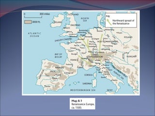 The document provides an overview of important developments in Northern Renaissance art and literature from the 15th to 16th centuries. It discusses influential artists like Jan van Eyck, Hieronymus Bosch, Albrecht Dürer, and Hans Holbein the Younger who helped establish oil painting as a major artistic medium. It also mentions key literary works such as William Shakespeare's plays, Miguel de Cervantes' Don Quixote, and Dante's Divine Comedy. The document covers major historical events of the Protestant Reformation as well as the growth of printmaking technology.