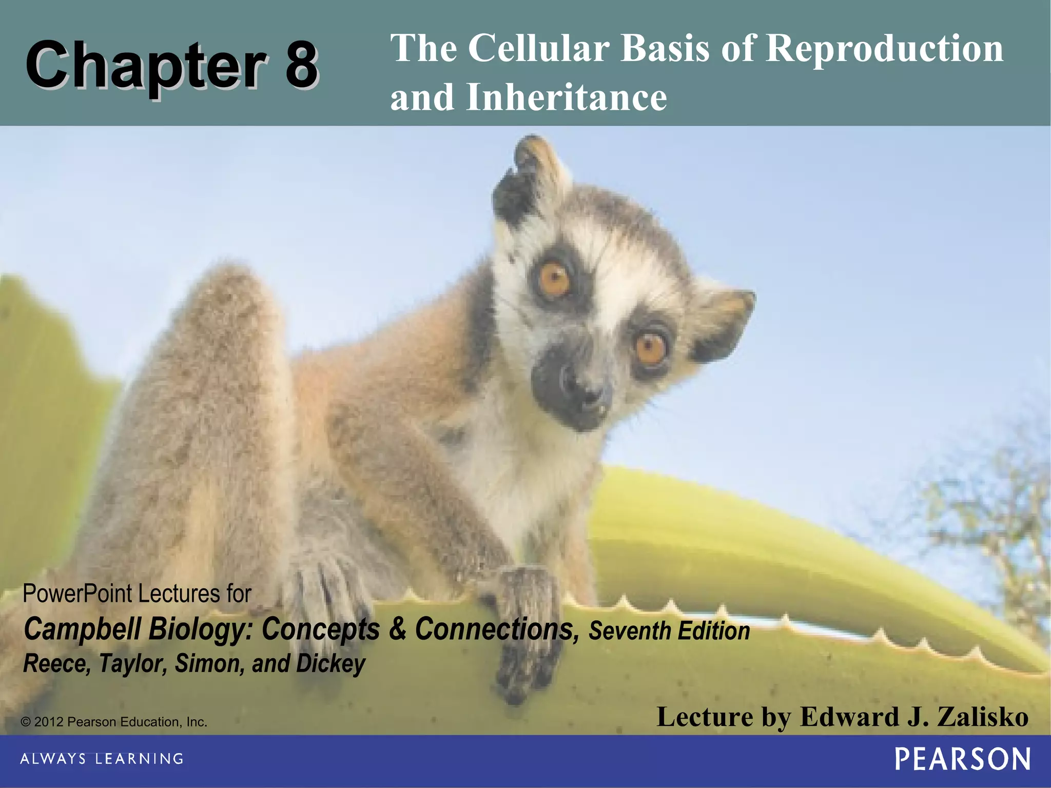 1) The chapter discusses the cellular basis of reproduction and inheritance. It covers topics like cell division, the cell cycle, meiosis, and alterations in chromosome structure.