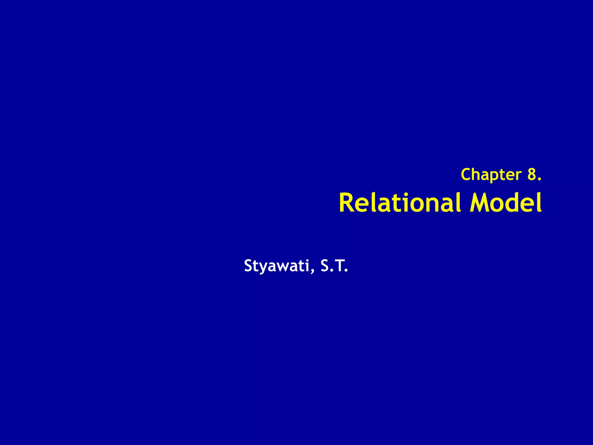 Bab 8 meringkaskan model relasional dalam basis data. Model ini merepresentasikan data sebagai kumpulan relasi yang terdiri dari tuple dan atribut. Bab ini juga menjelaskan operasi-operasi aljabar relasional seperti union, intersection, difference, dan cartesian product yang digunakan untuk memanipulasi relasi. Selanjutnya dijelaskan operasi select dan project sebagai operasi khusus basis data untuk memilih data berdasarkan kondisi tertentu atau memilih atribut tertentu.