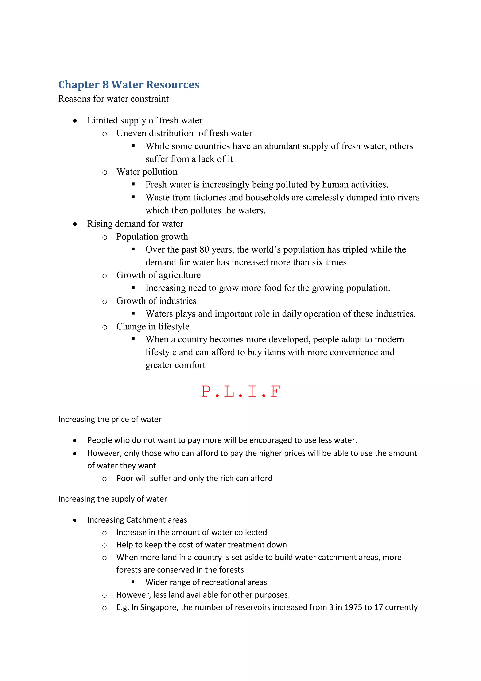 This document discusses reasons for water constraints including limited and unevenly distributed fresh water supplies as well as increasing pollution and demand from population growth, increased agriculture and industry, and changes in lifestyle. It then outlines strategies to address water constraints such as increasing water prices, catchment areas and supplies through international agreements, technology, and desalination as well as the importance of conserving water through policies, campaigns and public education.
