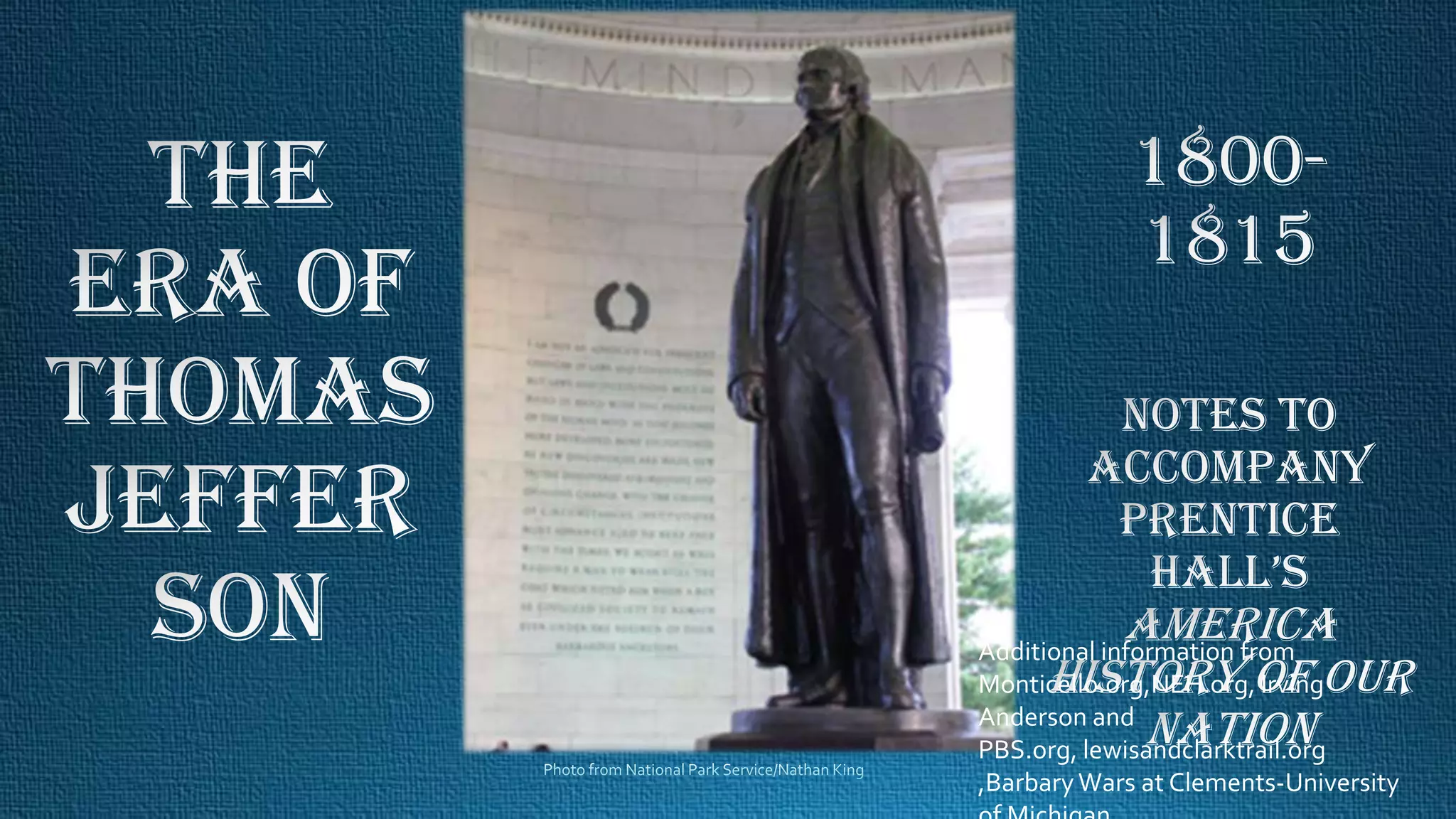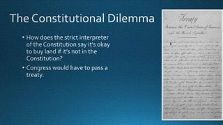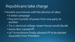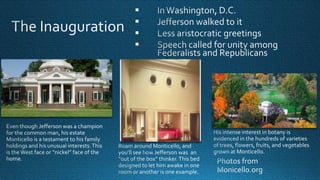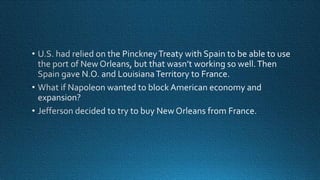This document provides a summary of Thomas Jefferson's presidency and key events during that time period including: