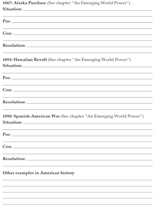 The United States took a more active role in world affairs in the early 20th century for several key reasons. The U.S. began by building a large navy to project its power globally. It then took its first steps by annexing Hawaii to expand its naval presence in the Pacific. Through the Spanish-American War and building of the Panama Canal, the U.S. increased its influence over countries in Latin America and connected its Atlantic and Pacific fleets. By this time, under presidents like Theodore Roosevelt, the U.S. had emerged as a growing imperial power seeking to expand its commercial and military interests overseas.