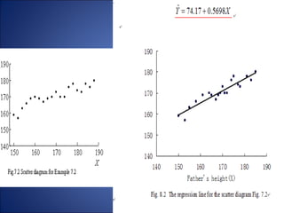 This document discusses linear regression analysis. It begins by introducing linear regression and its goal of exploring quantitative dependence between two continuous variables. It then defines independent and dependent variables, and explains that linear regression finds the line that best fits the data points by minimizing the sum of squared residuals. The document provides formulas for calculating the regression coefficients and discusses hypothesis testing and determining if a linear regression model is statistically significant. It concludes by noting some assumptions and limitations of linear regression analysis.