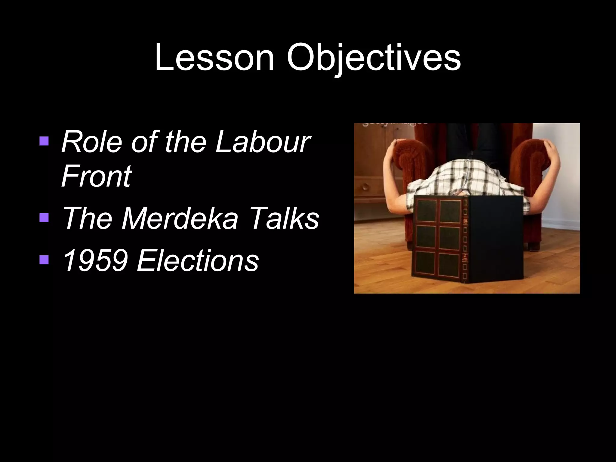 The document discusses Singapore's progress towards self-government from 1948 to 1959. It started with limited self-government under a Chief Minister in 1955. The talks between David Marshall and the British failed to achieve full internal self-government and he resigned. Lim Yew Hock became the next Chief Minister and successfully negotiated the 1958 Constitution that established internal self-government. This led to the first elections under self-government in 1959 where the PAP won a majority and formed the government with Lee Kuan Yew as the first Prime Minister.