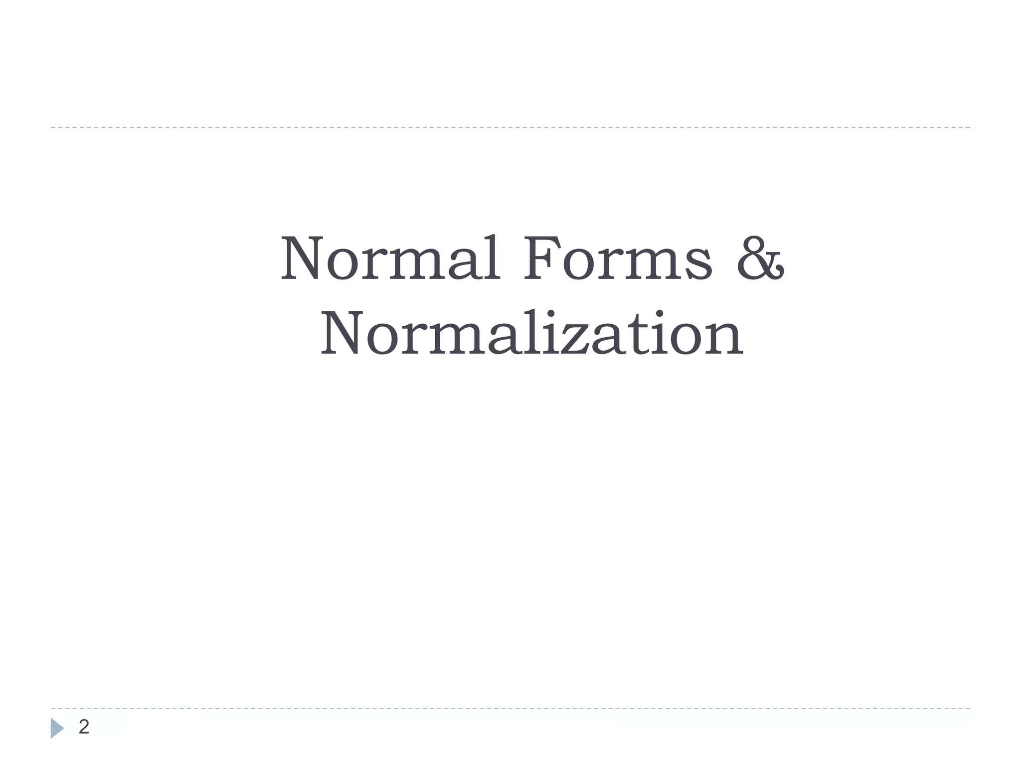 The document discusses database normalization. It defines normalization as decomposing relations to eliminate redundancy and anomalies. The goals of normalization are to eliminate redundancy, organize data efficiently, and reduce anomalies. It describes three common data anomalies - insertion, deletion, and modification anomalies. It also explains different normal forms including 1NF, 2NF, 3NF and BCNF and provides examples to illustrate how to normalize relations to these forms. The document emphasizes that normalization improves data quality by reducing redundancy and inconsistencies.