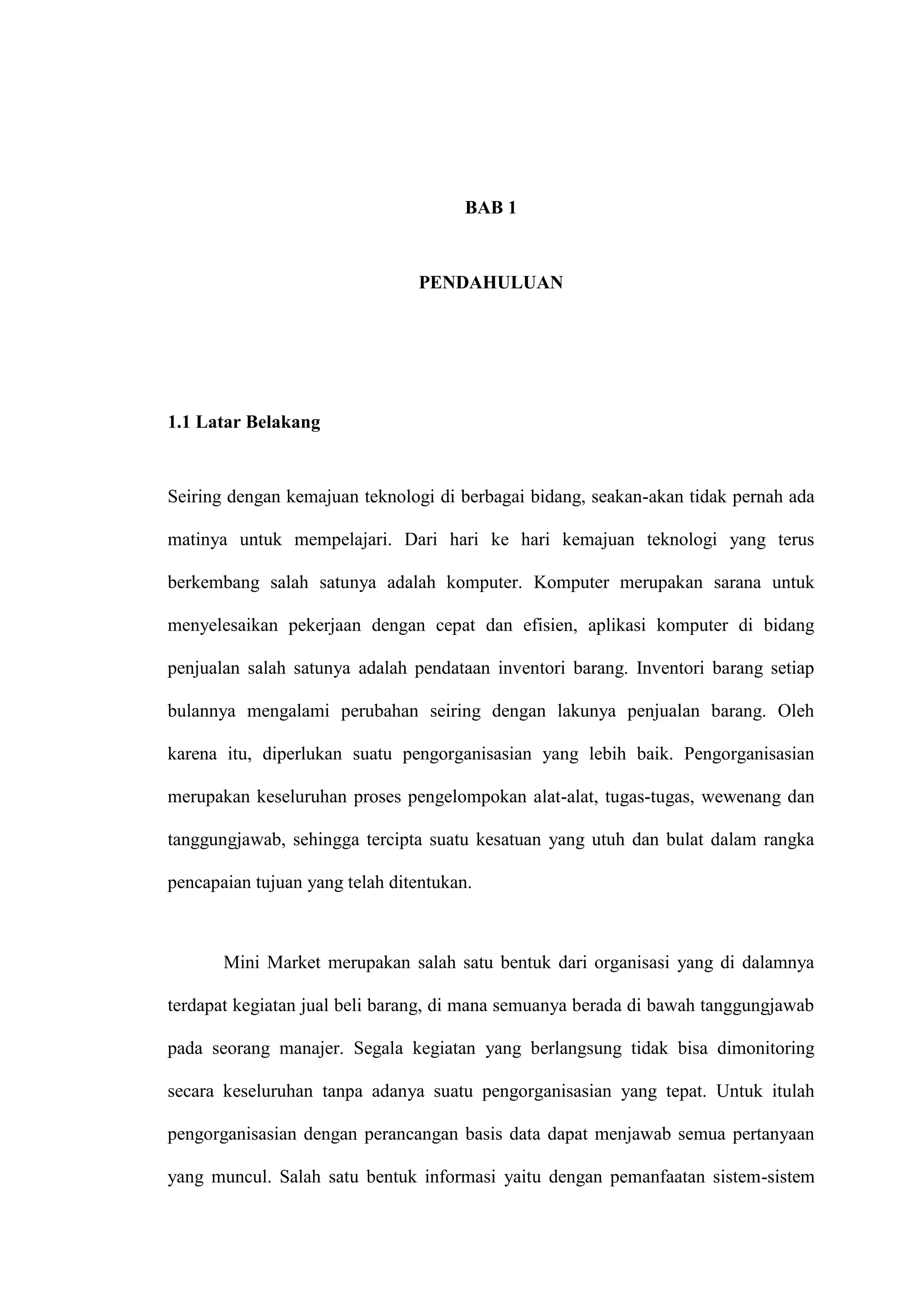 (1) Dokumen tersebut membahas tentang perancangan sistem aplikasi penjualan barang untuk Mini Market menggunakan Microsoft Visual Basic 6.0;