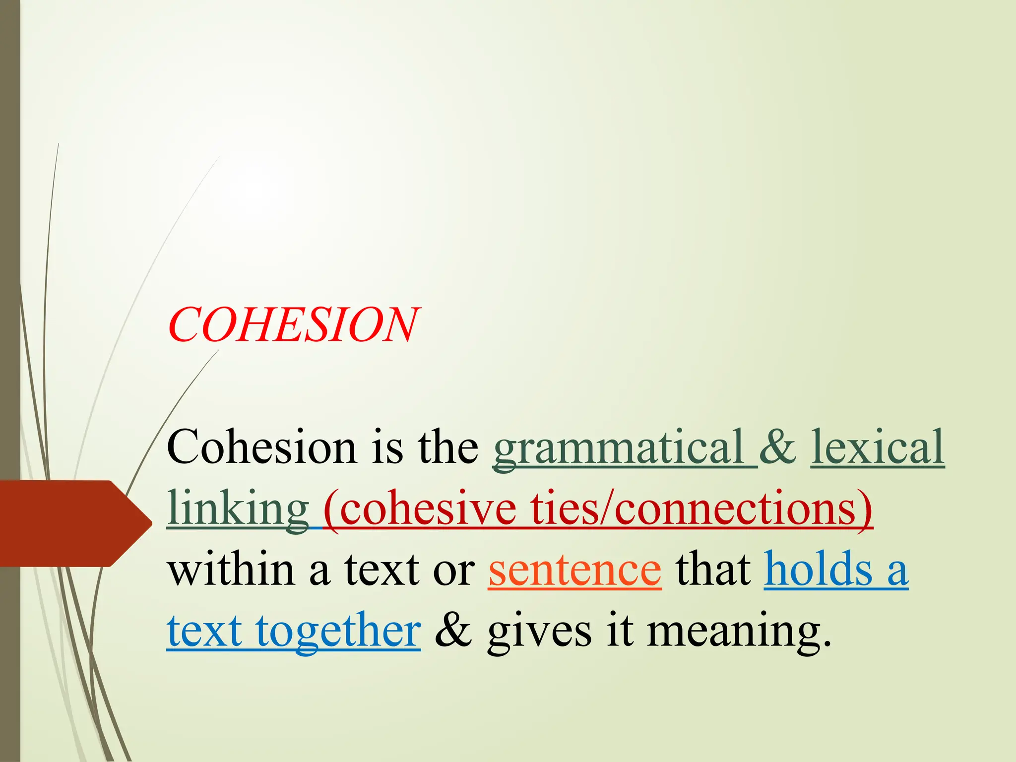 - Lexical Cohesion:Repetition uses the same word, or synonyms,