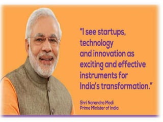 The document discusses entrepreneurs in India and provides information on various topics related to entrepreneurship. It begins by mentioning the founders of Flipkart, an Indian e-commerce company. It then defines what an entrepreneur is and provides examples of famous entrepreneurs such as Bill Gates, Steve Jobs, and Mark Zuckerberg. The document also discusses the characteristics of successful entrepreneurs, compares entrepreneurs and businessmen, and outlines the entrepreneurial process. It explores factors that affect entrepreneurial growth and development programs aimed at fostering entrepreneurship.