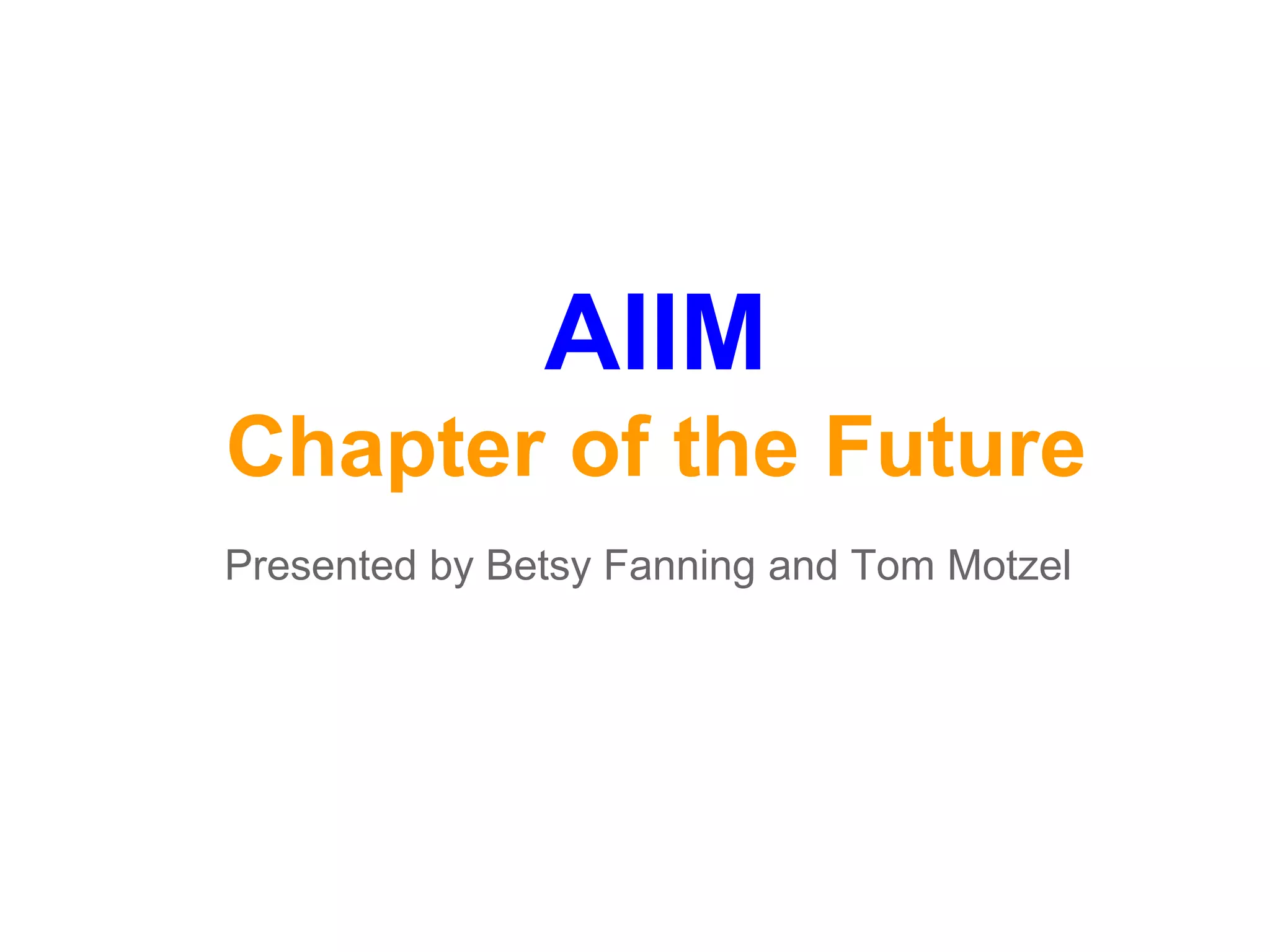 The document outlines the vision and mission of AIIM chapters. The vision is for information to be organized so that it can be intuitively accessed from any device. The mission of AIIM chapters is to increase awareness of information management resources and help organizations solve information challenges. It recommends essential components for chapters, including marketing, finances, relationship management, programming, and training. It provides guiding principles such as focusing on end-users, vendor-neutral events, community building, and social media.