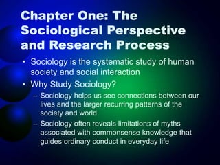 - Sociology is the systematic study of human society and social interaction. It helps reveal connections between individual lives and larger social patterns.