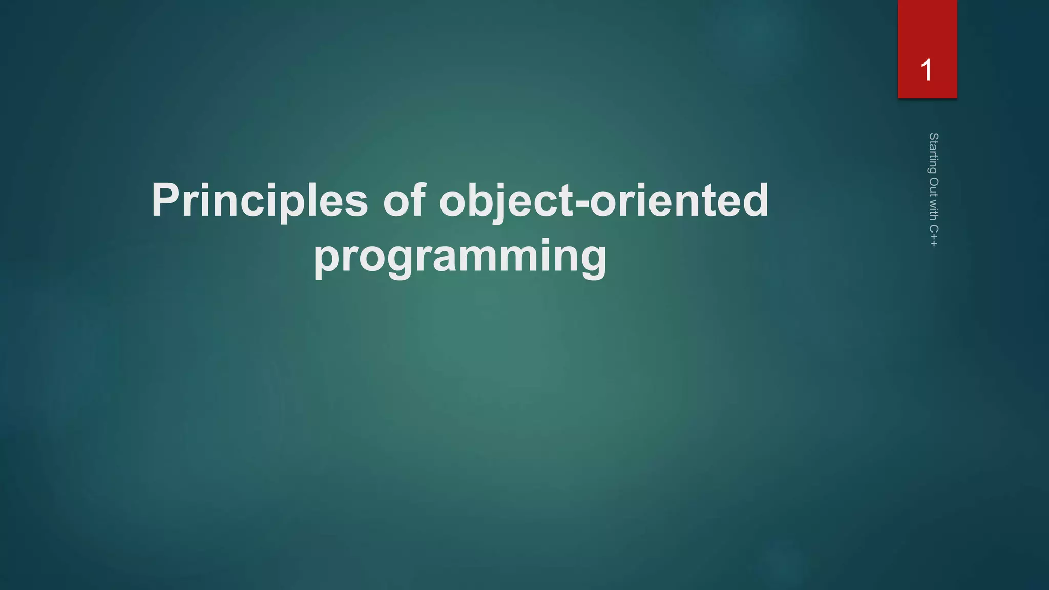 This document discusses the key concepts of object-oriented programming (OOP). It covers the basic features of OOP like emphasis on data over procedures, dividing programs into objects, and defining data structures to characterize objects. It also discusses important OOP concepts like classes, encapsulation, inheritance, polymorphism, and dynamic binding. The document provides examples to illustrate these concepts and highlights benefits of the OOP paradigm like code reusability and modularity.