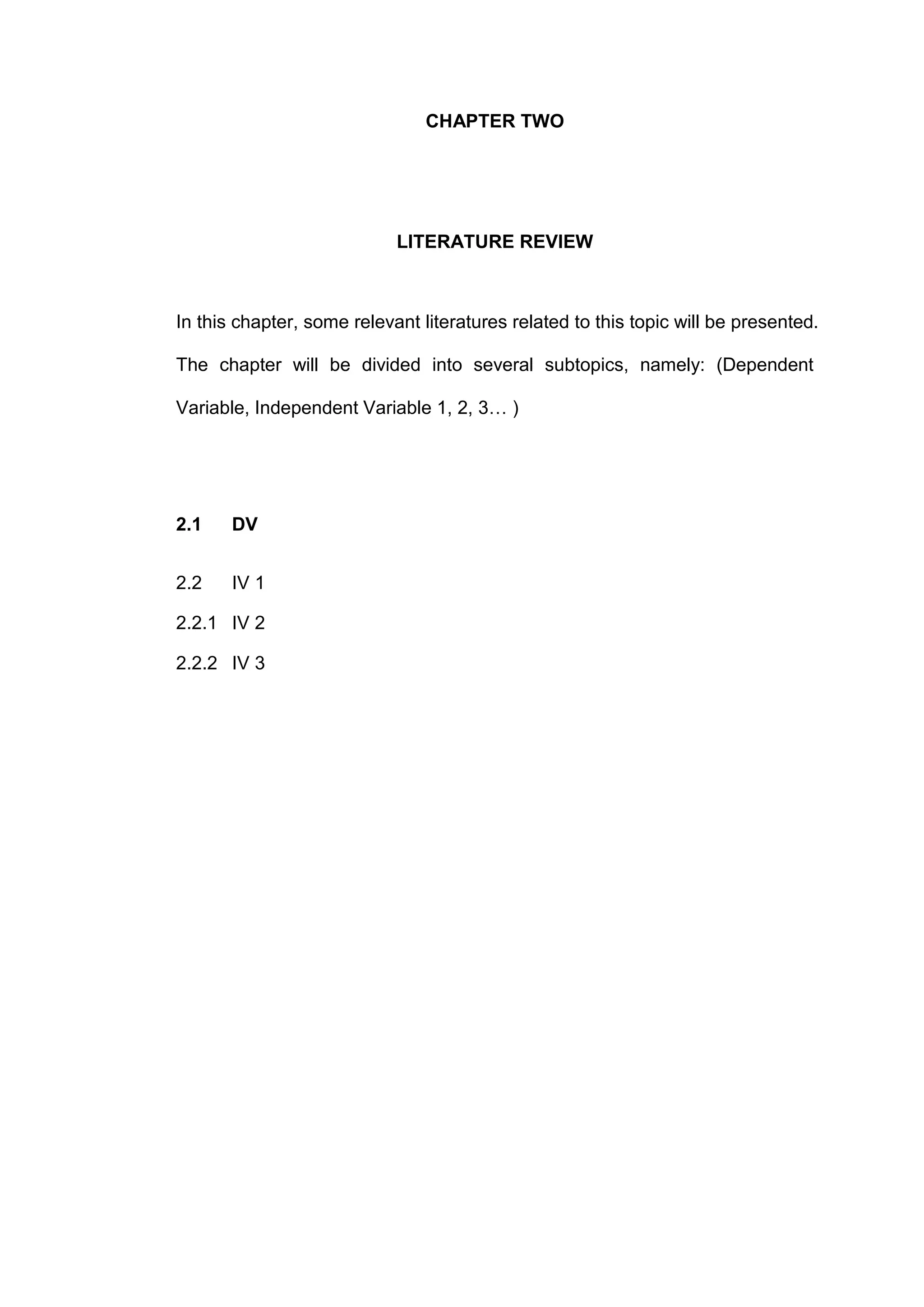 This document outlines the structure and content of chapters 2 and 3 in a research paper. Chapter 2 will review relevant literature divided into subtopics on the dependent and independent variables. Chapter 3 describes the quantitative research design, including a sample of 120 respondents selected using either quota or convenient sampling. Data analysis methods like descriptive statistics, t-tests, and correlation will be used to analyze relationships between variables.