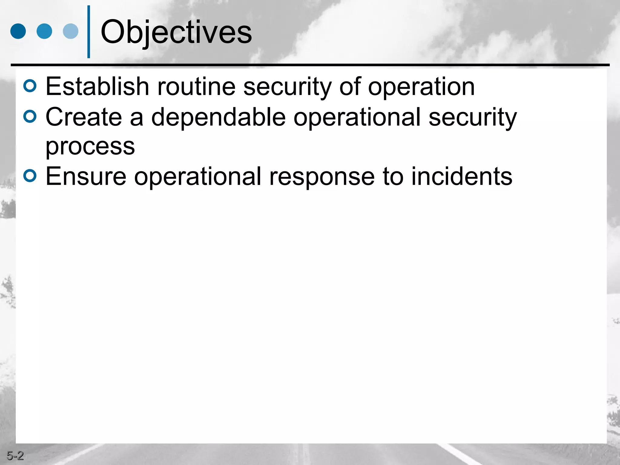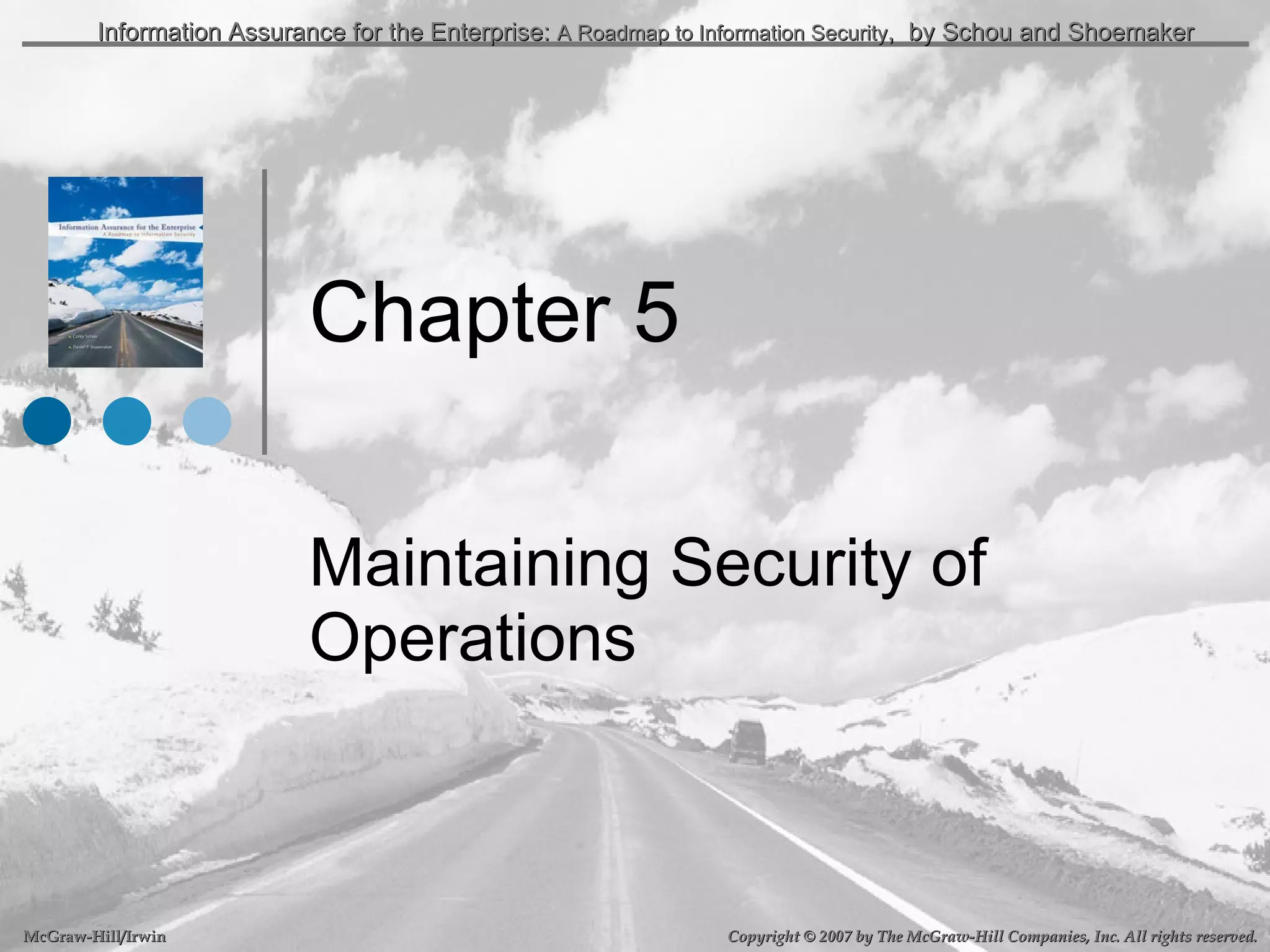 The document discusses maintaining security of operations through establishing routine security processes, ensuring operational response to incidents, and aligning security purposes with practices. It outlines key elements of an operational security process including sensing threats, analyzing risks, responding to issues, and managing the overall process. The document provides guidance on implementing security of operations through configuration management, operational planning, response to incidents, and day-to-day operational housekeeping activities.