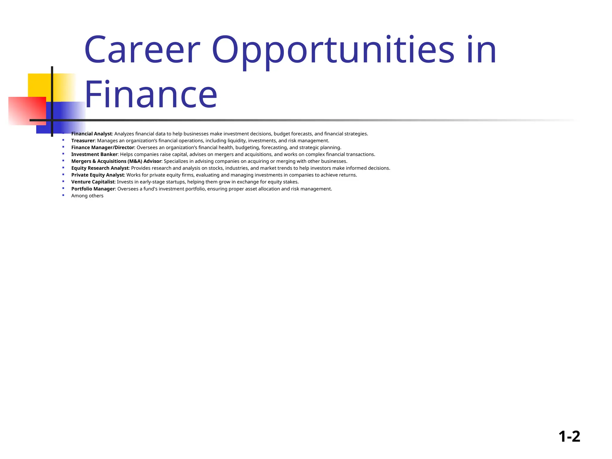 Equity Research Analyst: Provides research and analysis on stocks, industries, and market trends to help investors make informed decisions.