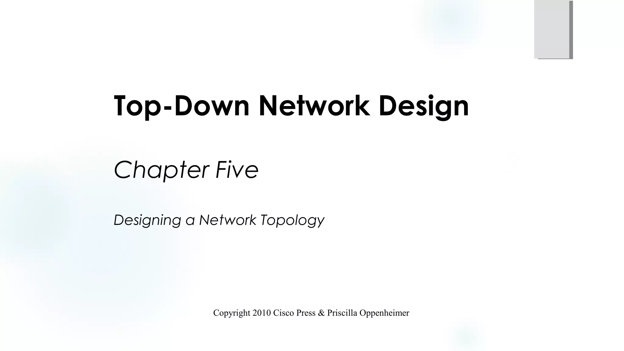 This document discusses principles for designing network topologies, including: