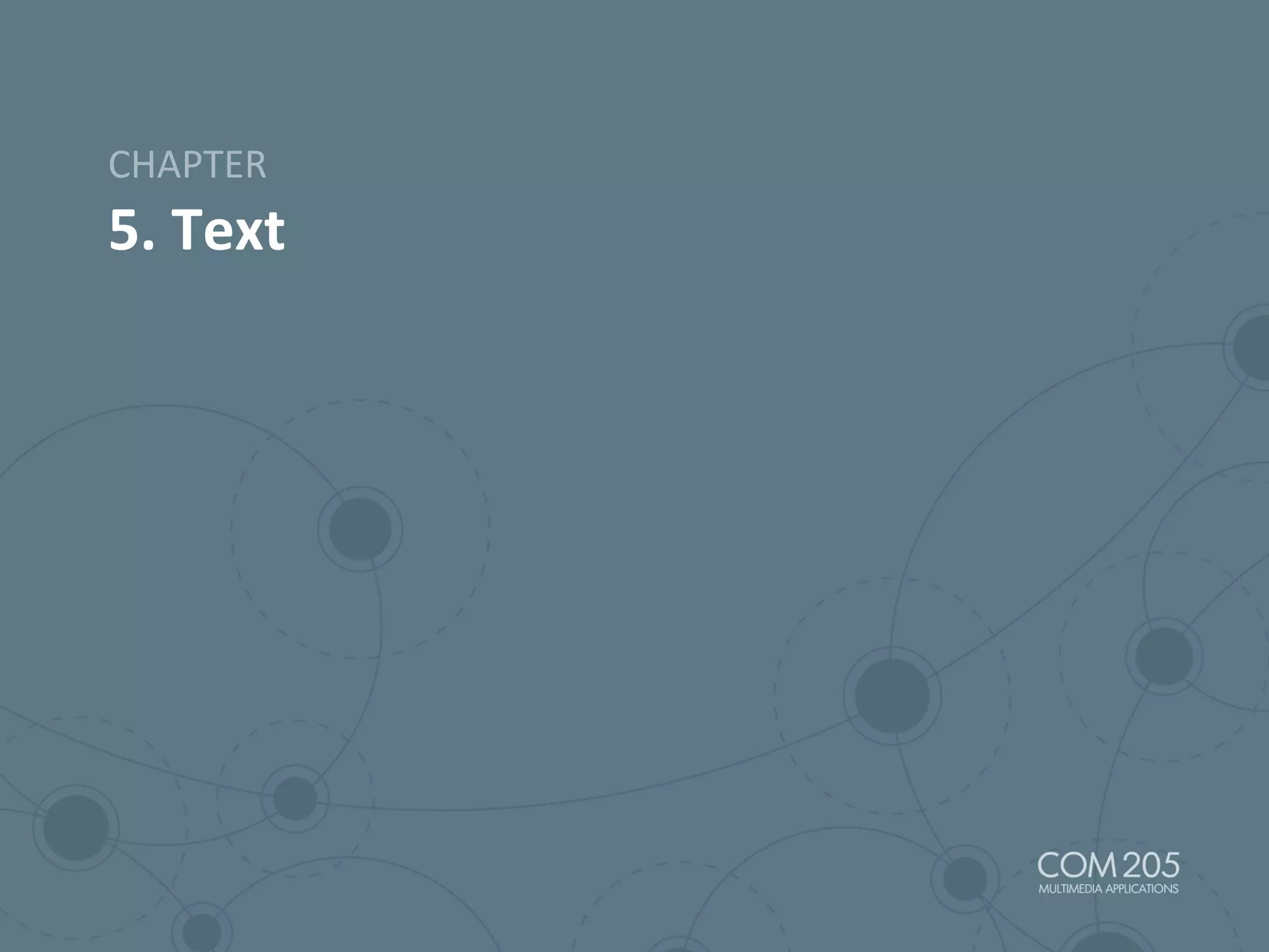 This document summarizes key aspects of text and typography for multimedia applications. It covers the text tradition from print including typefaces, size, and style. It also discusses computer text codes and font technologies like bitmap and outline fonts. The document outlines guidelines for using text in multimedia, such as being brief and readable, and combining text with other media. It provides an overview of incorporating text into multimedia applications through various methods.