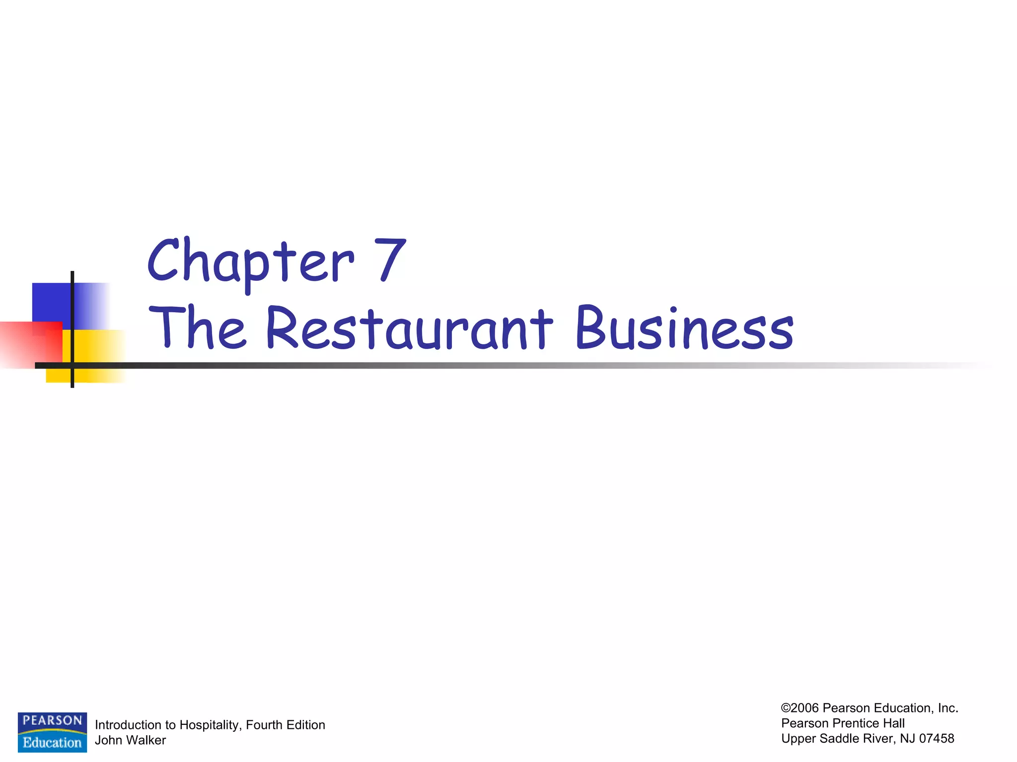 The document discusses different types and classifications of restaurants. It identifies chain and independent restaurants as two main classifications and describes some of the top chains and independents. It also outlines various restaurant segments including luxury restaurants, casual dining, theme restaurants, quick service restaurants, ethnic restaurants, and trends in the industry.