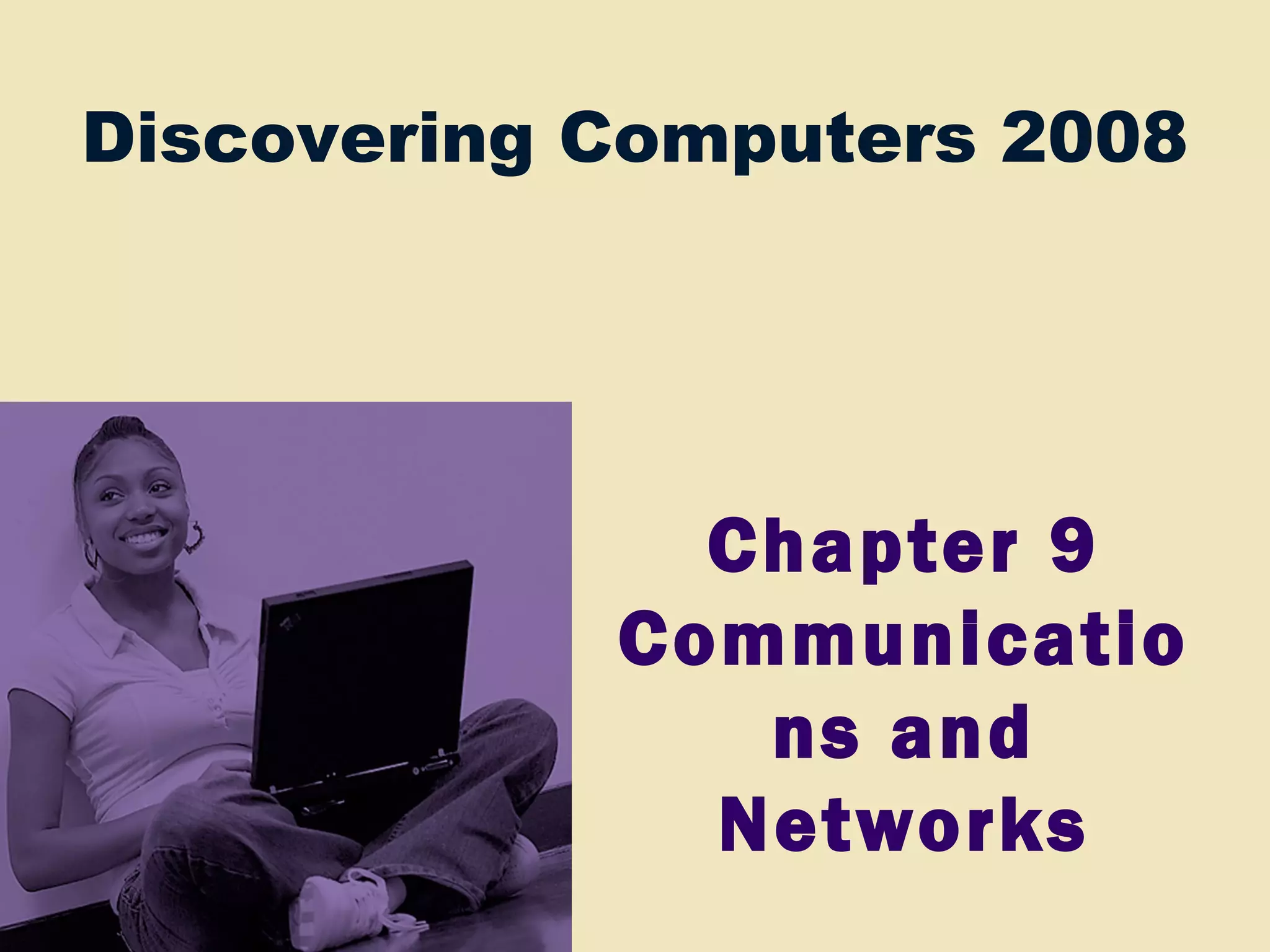 This document provides an overview of key topics covered in Chapter 9 of the textbook "Discovering Computers 2008". It discusses computer communications and networks, including components required for successful communications, uses of computer communications, types of networks, network communication standards, communications devices, setting up home networks, transmission media, and more. The objectives are to understand concepts like client/server networks, wireless technologies, and the infrastructure that enables computer and data transmission.