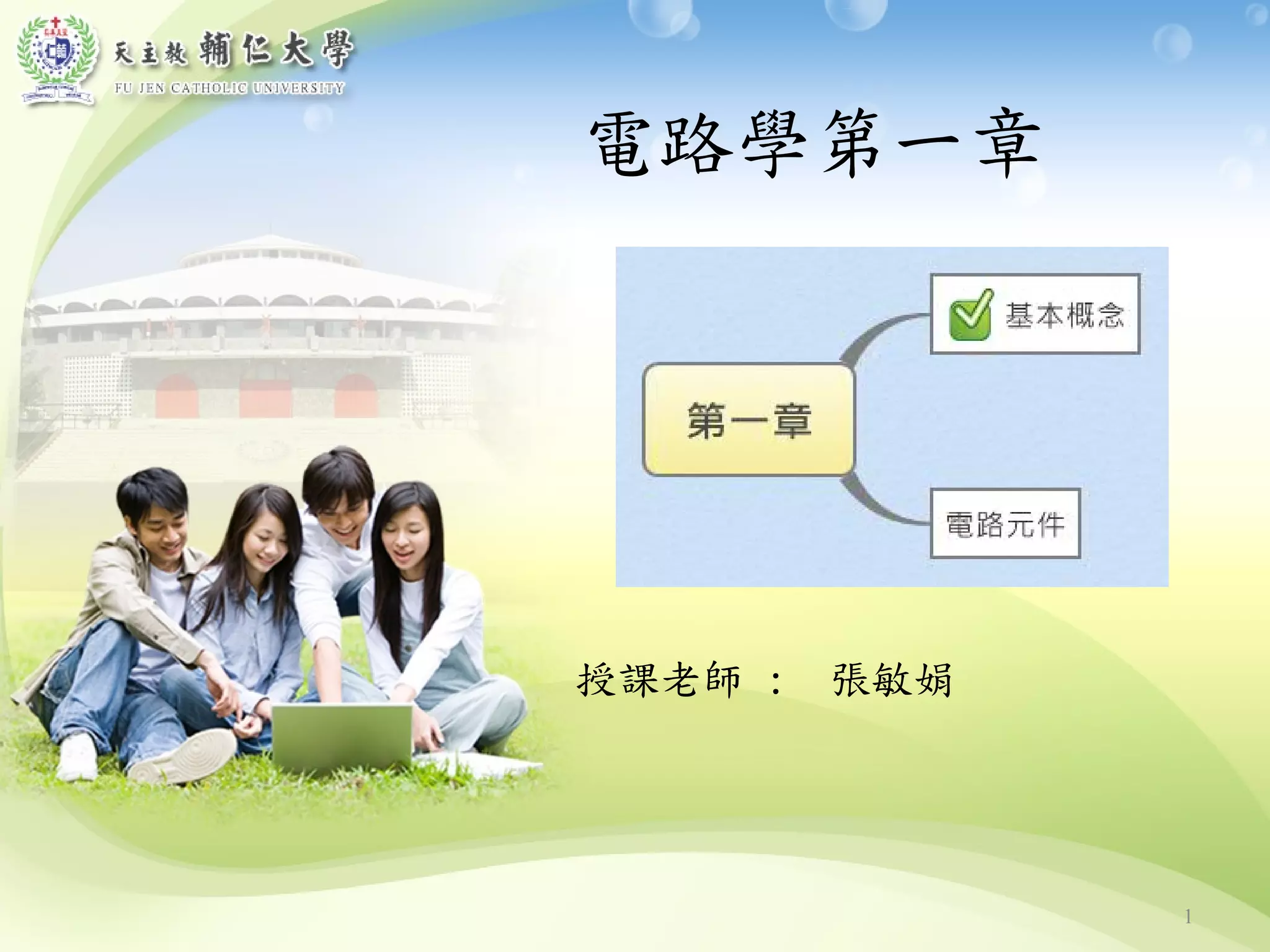 文档介绍电路学的基本概念,包括迴路、两端元件、电流和电压的性质以及直流与非直流电的区别。此外,文中讨论了电阻与电路测量,包括电路元件的符号,以及断路与短路的定义。最后,文档提到开关的工作原理和温度测量的方法。