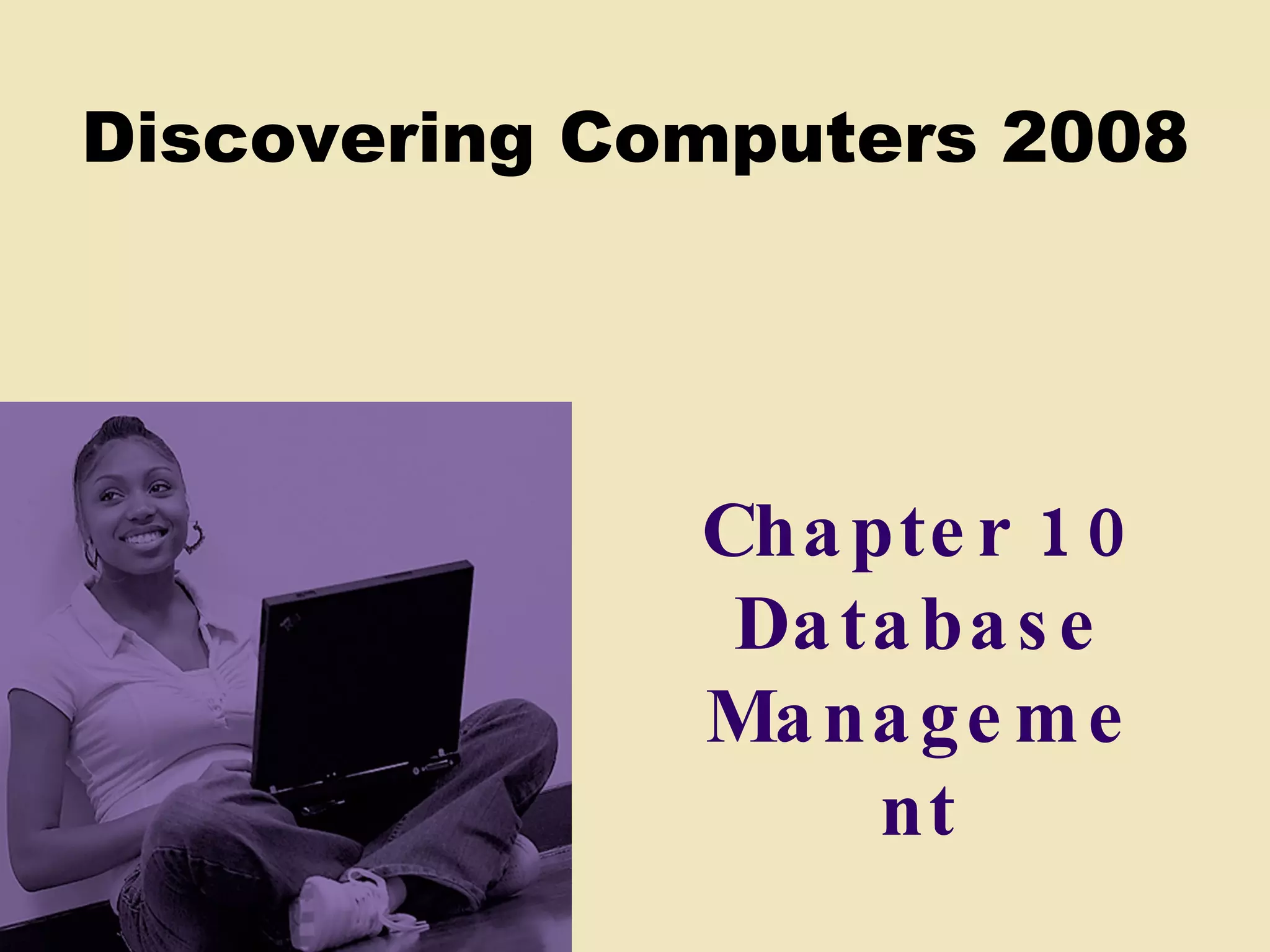 This chapter discusses database management and discusses key concepts such as: